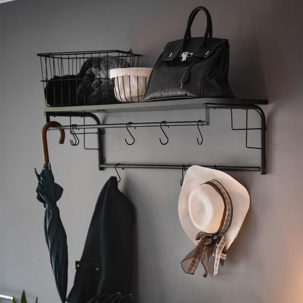 Półka z wieszakami w zestawie haczyki na których możemy odwiesić kurtki. Dodatkowa półka świetnie sprawdzi się do przechowywania dodatkowych akcesoriów. Solidnie wykonana, jest przydatna w każdym domu. Półka jest bardzo użyteczna a do tego stanowi element dekoracyjny. Swoim stylem idealnie będzie pasowała do wnętrz utrzymanych w industrialnym stylu typu loft. Oryginalny produkt marki Vilde. Wyprodukowano zgodnie z europejskimi standardami.