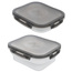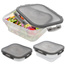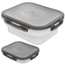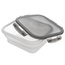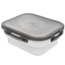 - WYTRZYMAŁY - Spód pojemnika wykonany z silikonu w mlecznym kolorze. Pokrywka wykonana z najwyższej jakości tworzywa w kolorze szarym, posiada uszczelkę oraz cztery klipsy zamykające.