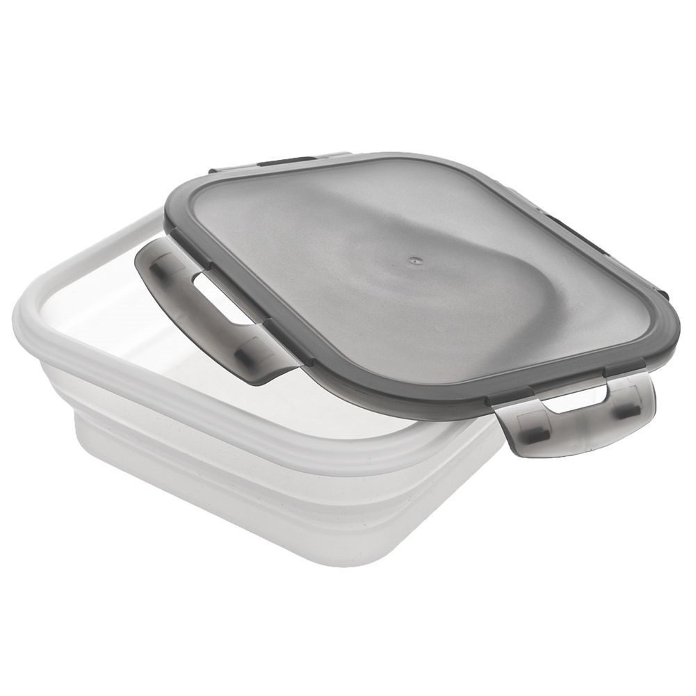 - PRAKTYCZNY - Praktyczny pojemnik kuchenny o pojemności 1 litra do przechowywania ze szczelną pokrywką wyposażoną w cztery klipsy. Wysokość złożonego pojemnika wynosi 3,5 cm a po rozłożeniu 7 cm. wymiary rozłożonego pojemnika 19 x 16 x 7 cm. Sprawdzi się do przechowywania oraz przenoszenia żywności.