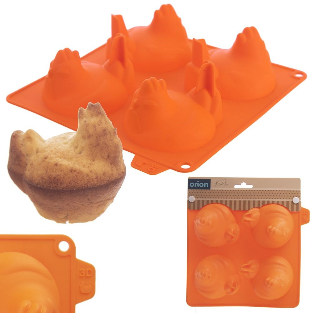 Silikonowa foremka pozwalająca upiec cztery kurki. Idealnie sprawdzi się w okresie wielkanocnym, gdyż stworzymy w niej słodkości w kształcie kurki. Możemy przygotować w niej ciasteczka, praliny, czekoladki w uroczym kształcie. Wzór kurki jest neutralny, dlatego wykorzystamy ją również poza okresem świątecznym. Foremka nie wchłania zapachów i smaków. Forma silikonowa jest lekka, elastyczne, zajmują mało miejsca, odporna na zmiany temperatury. Bardzo dobrze przewodzi ciepło. Oryginalny produkt czeskiej marki Orion. Wyprodukowano zgodnie z europejskimi standardami.