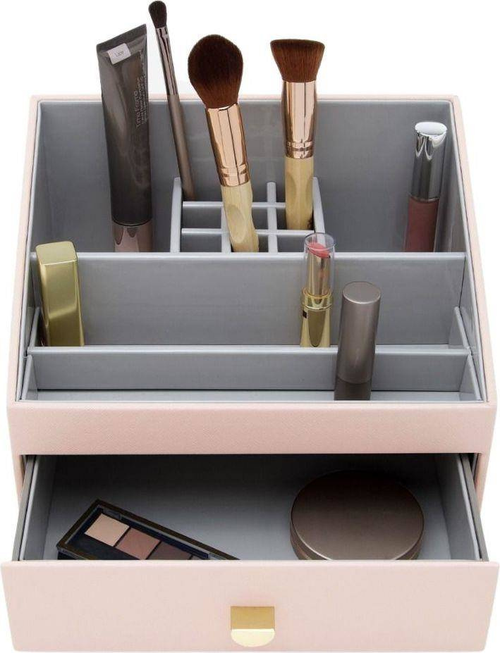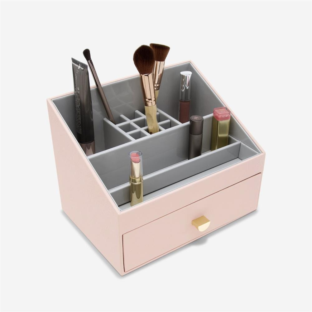Podstawka na tablet i telefon Stackers z ekologicznej skóry pozwoli Ci zabezpieczyć i uporządkować wiele urządzeń. Wyposażona w dwie szczeliny przeznaczone do przechowywania tabletów, czytników e-booków i telefonów komórkowych. Idealna, aby dodać trochę praktycznego stylu wnętrzom. Kosmetyki to podstawa w naszej łazience. Łatwo jednak o chaos, dlatego marka Stackers przychodzi nam z pomocą ze swoimi akcesoriami kosmetycznymi. Stylowe lusterka z organizerami oraz kosmetyczki domowe i podróżne, które można postawić na półce, ale i zawiesić, ułatwią nam z pewnością zapanowanie nad naszymi kremami, szczotkami i pędzlami do makijażu. Angielska marka Stackers to producent stylowych akcesoriów służących do przechowywania biżuterii i porządkowania przestrzeni. Produkty są wykonane z największą dbałością o jakość, dopracowane w formie i przemyślane. Wiele z nich można łączyć ze sobą, aby dopasować je do indywidualnych potrzeb. Dzięki eleganckiej formie sprawdzą się również jako doskonały upominek.