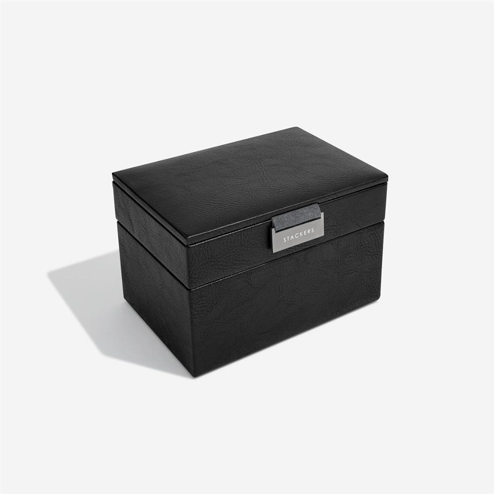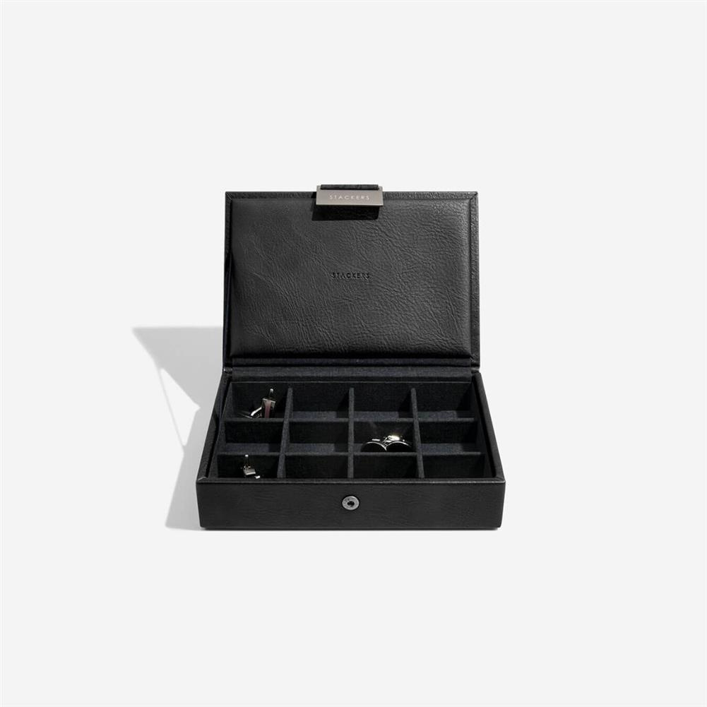 Przezroczysta akrylowa pokrywa zapewnia bezpieczeństwo i widoczność, a miejsce na maksymalnie 8 zegarków chroni je przed zarysowaniami i kurzem. Dzięki 8 komorowemu pudełku na zegarki Twoja kolekcja będzie uporządkowana. Gdy będzie się ona powiększać, po prostu dodaj kolejne warstwy Marka Stackers specjalizuje się w niezwykle eleganckich i praktycznych szkatułkach oraz pudełkach na biżuterię damską i akcesoria męskie. W ofercie znajdują się wykonane z największą dokładnością pudełka oraz etui (również podróżne) do przechowywania biżuterii, zegarków, okularów czy spinek do mankietów. Ogromną zaletą organizerów jest ich modułowość - w zależności od potrzeby możemy dołożyć kolejne piętra lub szufladki, pokrywki oraz wkładki, aby zyskać dodatkową przestrzeń na akcesoria. Angielska marka Stackers to producent stylowych akcesoriów służących do przechowywania biżuterii i porządkowania przestrzeni. Produkty są wykonane z największą dbałością o jakość, dopracowane w formie i przemyślane. Wiele z nich można łączyć ze sobą, aby dopasować je do indywidualnych potrzeb. Dzięki eleganckiej formie sprawdzą się również jako doskonały upominek.