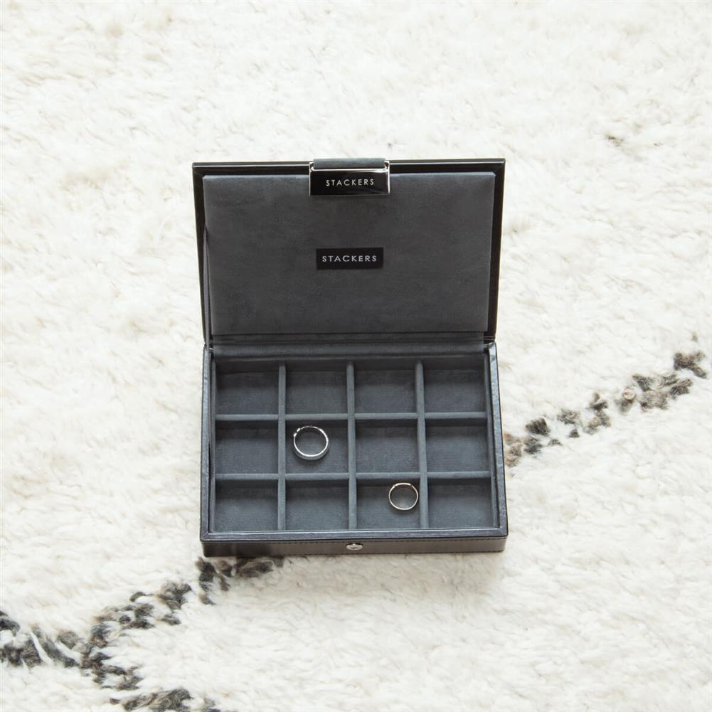 Marka Stackers specjalizuje się w niezwykle eleganckich i praktycznych szkatułkach oraz pudełkach na biżuterię damską i akcesoria męskie. W ofercie znajdują się wykonane z największą dokładnością pudełka oraz etui (również podróżne) do przechowywania biżuterii, zegarków, okularów czy spinek do mankietów. Ogromną zaletą organizerów jest ich modułowość - w zależności od potrzeby możemy dołożyć kolejne piętra lub szufladki, pokrywki oraz wkładki, aby zyskać dodatkową przestrzeń na akcesoria.