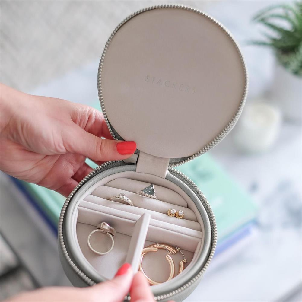 Pudełko podróżne na biżuterię Stackers Travel okrągłe kamienna szarość