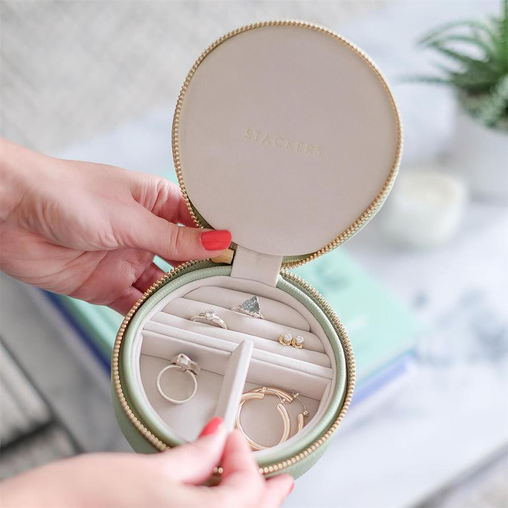 Pudełko podróżne na biżuterię Stackers Travel okrągłe zieleń szałwiowa