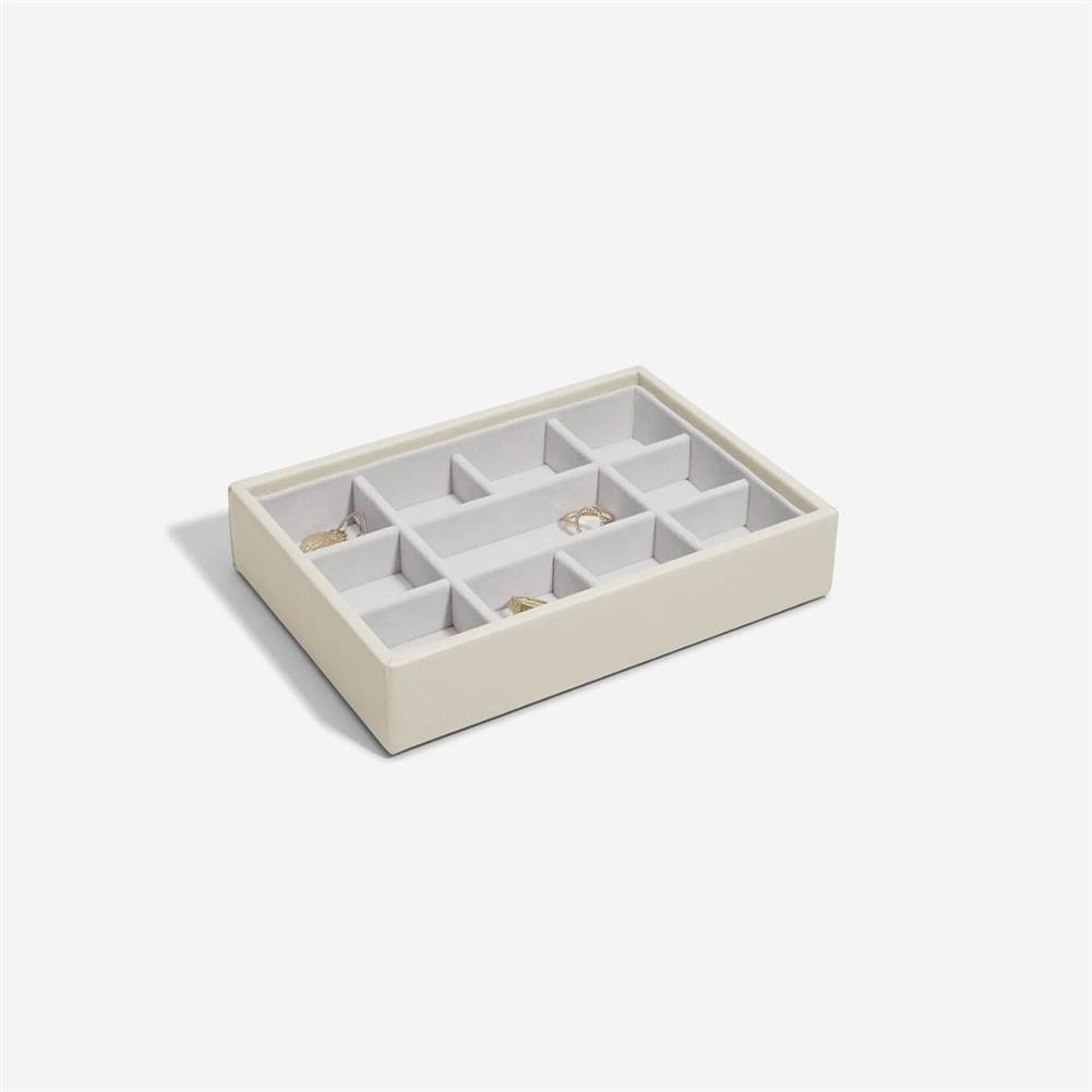 Marka Stackers specjalizuje się w niezwykle eleganckich i praktycznych szkatułkach oraz pudełkach na biżuterię damską i akcesoria męskie. W ofercie znajdują się wykonane z największą dokładnością pudełka oraz etui (również podróżne) do przechowywania biżuterii, zegarków, okularów czy spinek do mankietów. Ogromną zaletą organizerów jest ich modułowość - w zależności od potrzeby możemy dołożyć kolejne piętra lub szufladki, pokrywki oraz wkładki, aby zyskać dodatkową przestrzeń na akcesoria.