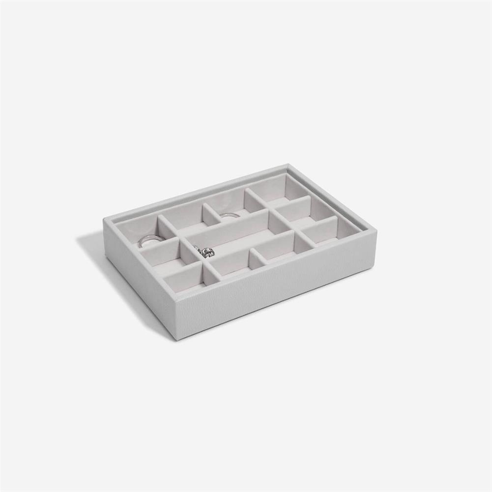 Koniec z gubieniem kolczyków i plątaniem się naszyjników! Szkatułka na biżuterię Stackers z szufladą zapewnia wszechstronne miejsce do przechowywania biżuterii. Może być początkiem większej szkatułki lub samodzielnym elementem na komodzie. Przechowuj swoją ulubioną biżuterię w bezpiecznym i pięknie zorganizowanym schowku na pierścionki, kolczyki, naszyjniki i bransoletki. Marka Stackers specjalizuje się w niezwykle eleganckich i praktycznych szkatułkach oraz pudełkach na biżuterię damską i akcesoria męskie. W ofercie znajdują się wykonane z największą dokładnością pudełka oraz etui (również podróżne) do przechowywania biżuterii, zegarków, okularów czy spinek do mankietów. Ogromną zaletą organizerów jest ich modułowość - w zależności od potrzeby możemy dołożyć kolejne piętra lub szufladki, pokrywki oraz wkładki, aby zyskać dodatkową przestrzeń na akcesoria. Angielska marka Stackers to producent stylowych akcesoriów służących do przechowywania biżuterii i porządkowania przestrzeni. Produkty są wykonane z największą dbałością o jakość, dopracowane w formie i przemyślane. Wiele z nich można łączyć ze sobą, aby dopasować je do indywidualnych potrzeb. Dzięki eleganckiej formie sprawdzą się również jako doskonały upominek.