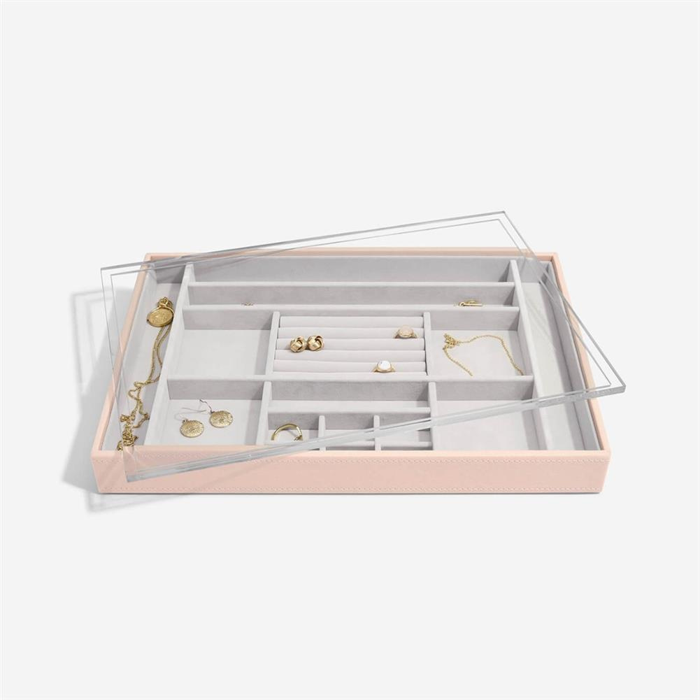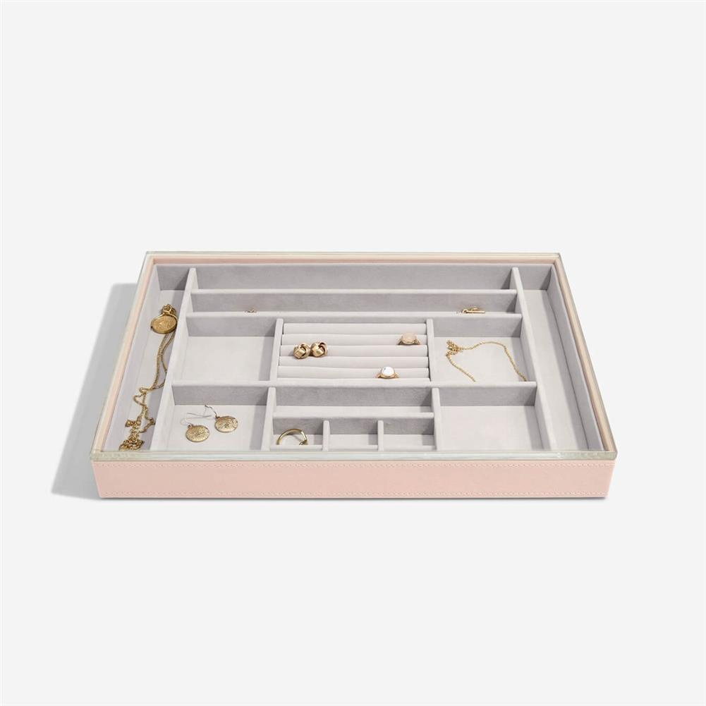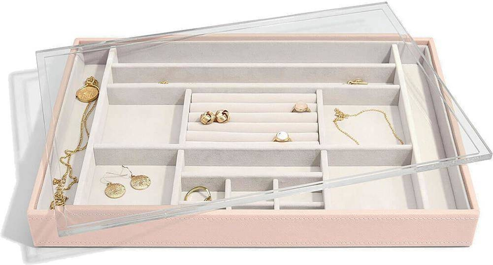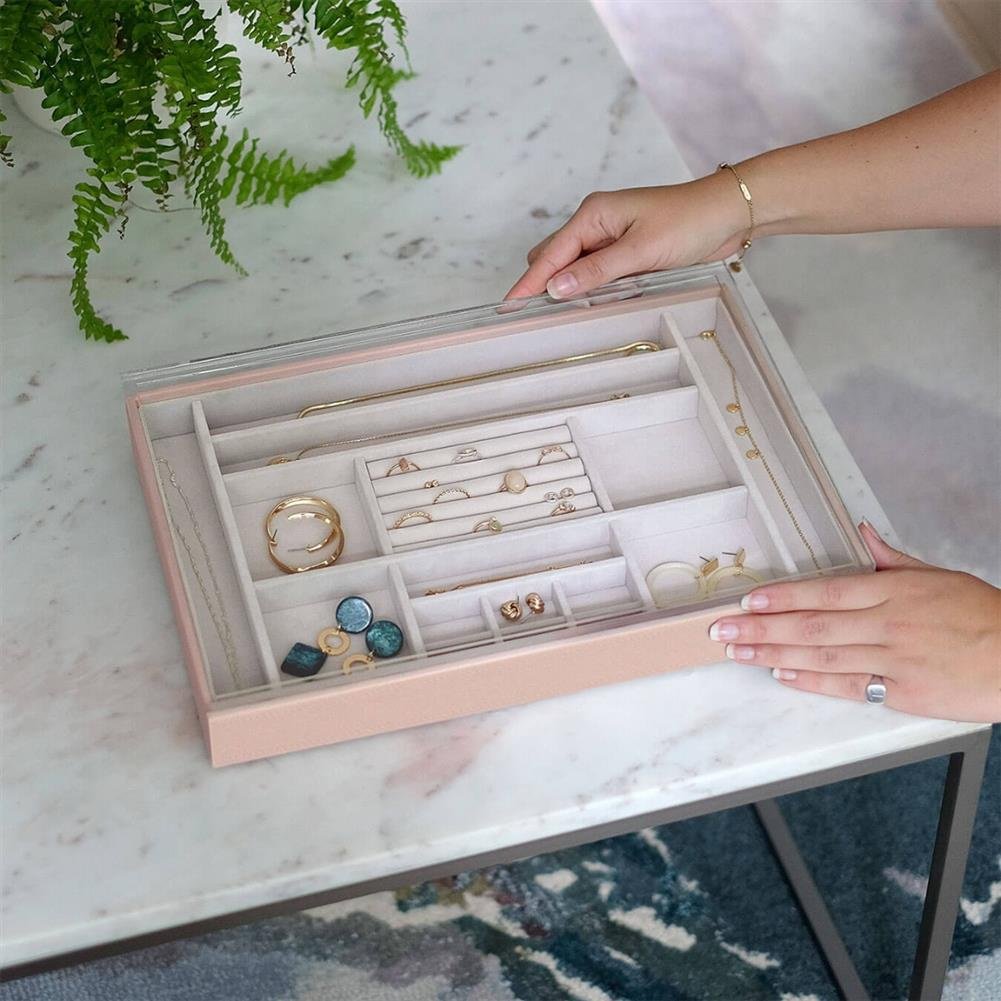 Pudełka na biżuterię Stackers zostały zaprojektowane tak, aby możliwe było stworzenie swojej własnej kombinacji, wybierając warstwy i akcesoria najlepiej pasujące do Twojej kolekcji biżuterii. Szkatułka może być również idealnym rozwiązaniem do przechowywania biżuterii w szufladzie, jeśli chcesz zachować porządek na toaletce. Szkatułka Stackers Classic posiada 25 przegródek, dzięki którym doskonale nadaje się do przechowywania drobnych elementów. Jest to jedna z najbardziej uniwersalnych warstw, niezależnie od tego, czy posiadasz pierścionki, charmsy czy kolekcjonujesz kolczyki. Dobra rada: Twoje cienkie łańcuszki nie plączą się, jeśli każdy z nich umieścisz w osobnej komorze. Marka Stackers specjalizuje się w niezwykle eleganckich i praktycznych szkatułkach oraz pudełkach na biżuterię damską i akcesoria męskie. W ofercie znajdują się wykonane z największą dokładnością pudełka oraz etui (również podróżne) do przechowywania biżuterii, zegarków, okularów czy spinek do mankietów. Ogromną zaletą organizerów jest ich modułowość - w zależności od potrzeby możemy dołożyć kolejne piętra lub szufladki, pokrywki oraz wkładki, aby zyskać dodatkową przestrzeń na akcesoria. Angielska marka Stackers to producent stylowych akcesoriów służących do przechowywania biżuterii i porządkowania przestrzeni. Produkty są wykonane z największą dbałością o jakość, dopracowane w formie i przemyślane. Wiele z nich można łączyć ze sobą, aby dopasować je do indywidualnych potrzeb. Dzięki eleganckiej formie sprawdzą się również jako doskonały upominek.
