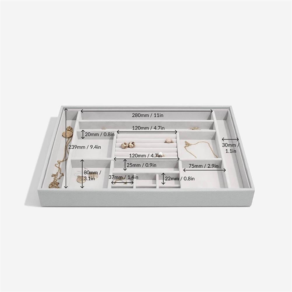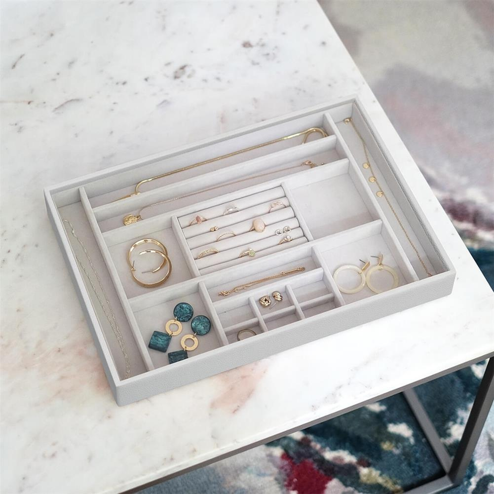Pudełka na biżuterię Stackers zostały zaprojektowane tak, aby możliwe było stworzenie swojej własnej kombinacji, wybierając warstwy i akcesoria najlepiej pasujące do Twojej kolekcji biżuterii. Szkatułka może być również idealnym rozwiązaniem do przechowywania biżuterii w szufladzie, jeśli chcesz zachować porządek na toaletce. Szkatułka Stackers Classic posiada 25 przegródek, dzięki którym doskonale nadaje się do przechowywania drobnych elementów. Jest to jedna z najbardziej uniwersalnych warstw, niezależnie od tego, czy posiadasz pierścionki, charmsy czy kolekcjonujesz kolczyki. Dobra rada: Twoje cienkie łańcuszki nie plączą się, jeśli każdy z nich umieścisz w osobnej komorze. Marka Stackers specjalizuje się w niezwykle eleganckich i praktycznych szkatułkach oraz pudełkach na biżuterię damską i akcesoria męskie. W ofercie znajdują się wykonane z największą dokładnością pudełka oraz etui (również podróżne) do przechowywania biżuterii, zegarków, okularów czy spinek do mankietów. Ogromną zaletą organizerów jest ich modułowość - w zależności od potrzeby możemy dołożyć kolejne piętra lub szufladki, pokrywki oraz wkładki, aby zyskać dodatkową przestrzeń na akcesoria. Angielska marka Stackers to producent stylowych akcesoriów służących do przechowywania biżuterii i porządkowania przestrzeni. Produkty są wykonane z największą dbałością o jakość, dopracowane w formie i przemyślane. Wiele z nich można łączyć ze sobą, aby dopasować je do indywidualnych potrzeb. Dzięki eleganckiej formie sprawdzą się również jako doskonały upominek.