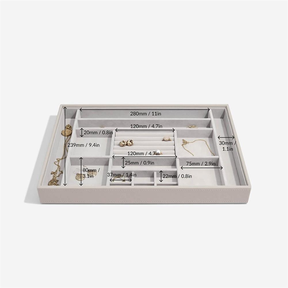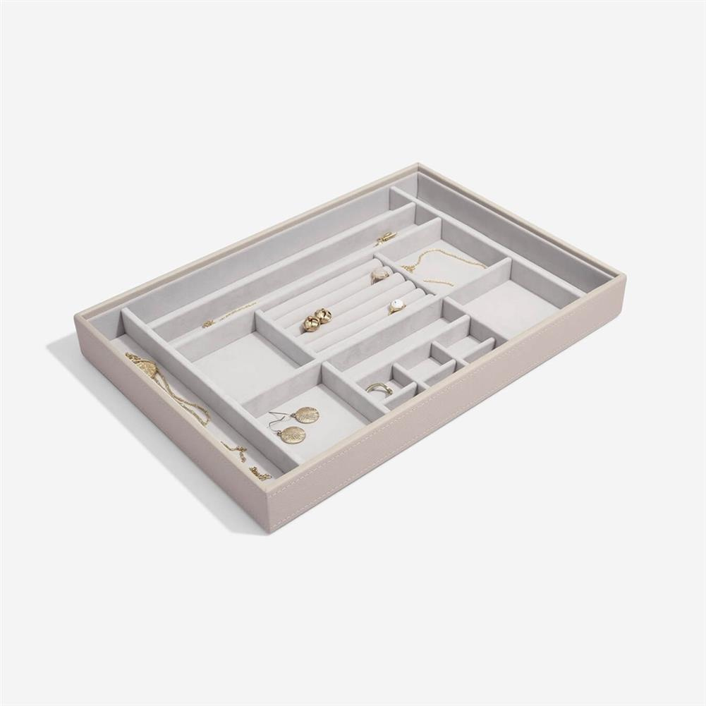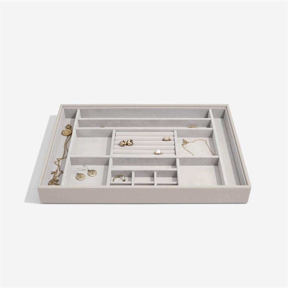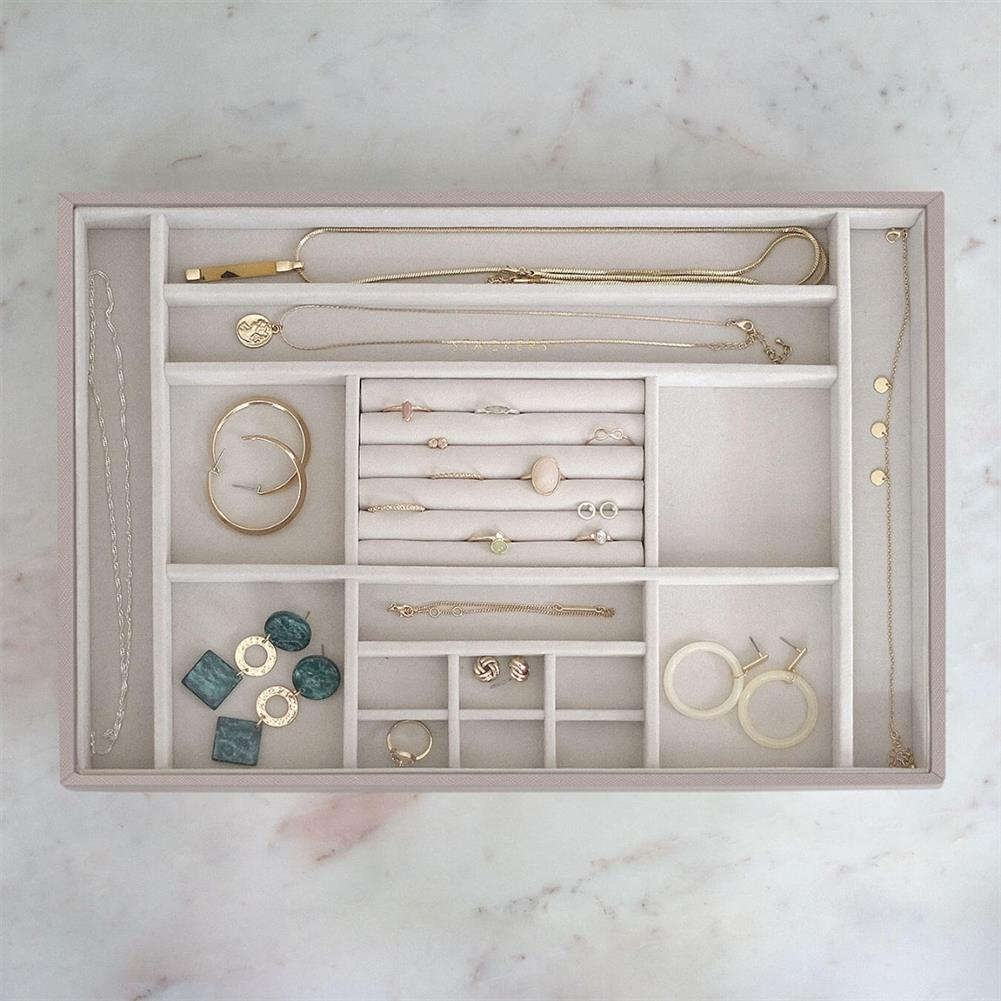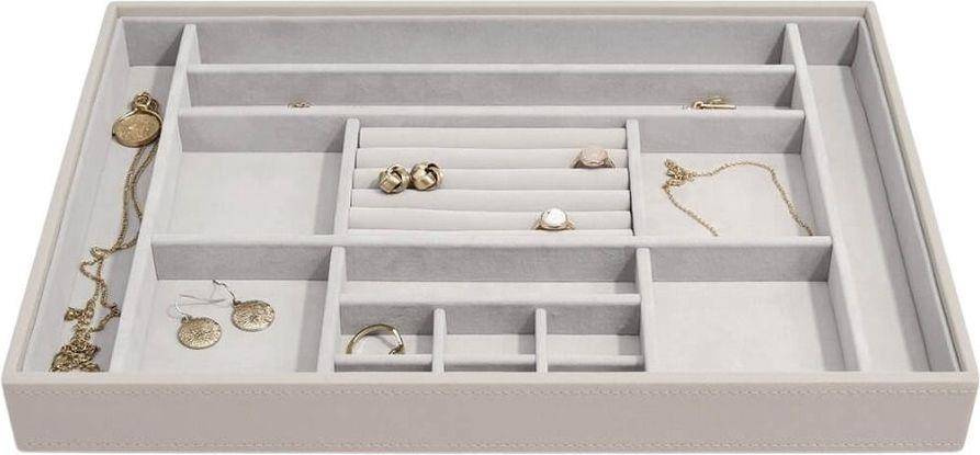 Pudełka na biżuterię Stackers zostały zaprojektowane tak, aby możliwe było stworzenie swojej własnej kombinacji, wybierając warstwy i akcesoria najlepiej pasujące do kolekcji biżuterii. Pudełko na biżuterię może być również idealnym rozwiązaniem do przechowywania w szufladzie, jeśli chcesz zachować porządek na toaletce. Warstwa na zegarki i akcesoria to świetny wybór dla osób, które chcą bezpiecznie przechowywać większe elementy. Możesz również dodać wkładkę na pierścionki, poduszkę na zegarki lub oba te elementy, aby bezpiecznie przechowywać biżuterię. Wskazówka: Podróżne pudełko na biżuterię w rozmiarze Medium zostało zaprojektowane tak, aby idealnie pasowało do tej warstwy, gdy nie jest używane. Marka Stackers specjalizuje się w niezwykle eleganckich i praktycznych szkatułkach oraz pudełkach na biżuterię damską i akcesoria męskie. W ofercie znajdują się wykonane z największą dokładnością pudełka oraz etui (również podróżne) do przechowywania biżuterii, zegarków, okularów czy spinek do mankietów. Ogromną zaletą organizerów jest ich modułowość - w zależności od potrzeby możemy dołożyć kolejne piętra lub szufladki, pokrywki oraz wkładki, aby zyskać dodatkową przestrzeń na akcesoria. Angielska marka Stackers to producent stylowych akcesoriów służących do przechowywania biżuterii i porządkowania przestrzeni. Produkty są wykonane z największą dbałością o jakość, dopracowane w formie i przemyślane. Wiele z nich można łączyć ze sobą, aby dopasować je do indywidualnych potrzeb. Dzięki eleganckiej formie sprawdzą się również jako doskonały upominek.