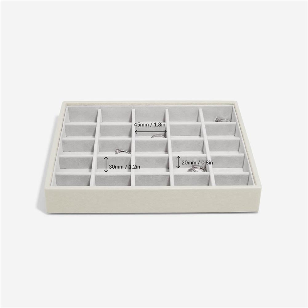 Pudełka na biżuterię Stackers zostały zaprojektowane tak, aby możliwe było stworzenie swojej własnej kombinacji, wybierając warstwy i akcesoria najlepiej pasujące do kolekcji biżuterii. Pudełko na biżuterię może być również idealnym rozwiązaniem do przechowywania w szufladzie, jeśli chcesz zachować porządek na toaletce. Warstwa na zegarki i akcesoria to świetny wybór dla osób, które chcą bezpiecznie przechowywać większe elementy. Możesz również dodać wkładkę na pierścionki, poduszkę na zegarki lub oba te elementy, aby bezpiecznie przechowywać biżuterię. Wskazówka: Podróżne pudełko na biżuterię w rozmiarze Medium zostało zaprojektowane tak, aby idealnie pasowało do tej warstwy, gdy nie jest używane.