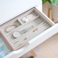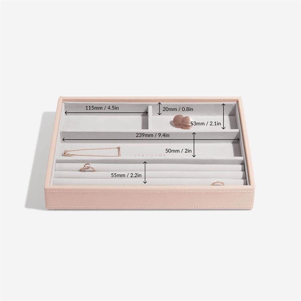Szkatułka na biżuterię Stackers classic z szufladą jest idealna na większe przedmioty i akcesoria. Możesz również dodać wkładkę na pierścionki, poduszkę na zegarek, lub oba, aby bezpiecznie przechowywać biżuterię. Może być używana jako samodzielna szuflada na biżuterię lub ustawiona w stos z innymi szufladami w rozmiarze Classic, pudełkami w rozmiarze Classic lub organizerem do makijażu Classic, aby stworzyć luksusowe miejsce do szykowania się do pracy. Marka Stackers specjalizuje się w niezwykle eleganckich i praktycznych szkatułkach oraz pudełkach na biżuterię damską i akcesoria męskie. W ofercie znajdują się wykonane z największą dokładnością pudełka oraz etui (również podróżne) do przechowywania biżuterii, zegarków, okularów czy spinek do mankietów. Ogromną zaletą organizerów jest ich modułowość - w zależności od potrzeby możemy dołożyć kolejne piętra lub szufladki, pokrywki oraz wkładki, aby zyskać dodatkową przestrzeń na akcesoria. Angielska marka Stackers to producent stylowych akcesoriów służących do przechowywania biżuterii i porządkowania przestrzeni. Produkty są wykonane z największą dbałością o jakość, dopracowane w formie i przemyślane. Wiele z nich można łączyć ze sobą, aby dopasować je do indywidualnych potrzeb. Dzięki eleganckiej formie sprawdzą się również jako doskonały upominek.