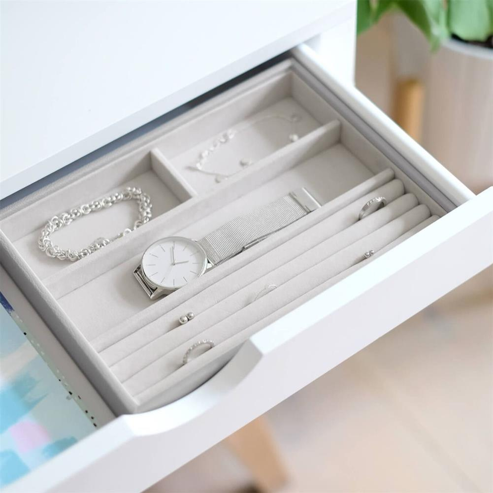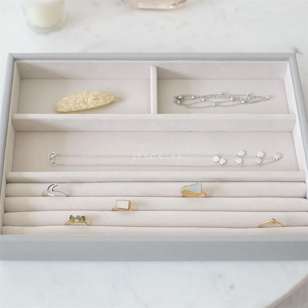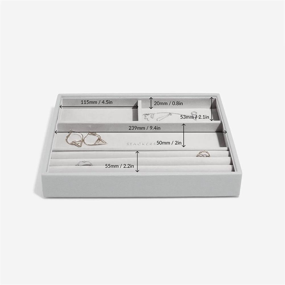 Pudełka na biżuterię Stackers zostały zaprojektowane tak, aby możliwe było stworzenie swojej własnej kombinacji, wybierając warstwy i akcesoria najlepiej pasujące do Twojej kolekcji. Koniec z gubieniem kolczyków i plątaniem się naszyjników! Pudełko Stackers Classic to doskonały punkt wyjścia do stworzenia szkatułki na biżuterię lub jako samodzielny element na toaletce. Przechowuj swoją ulubioną biżuterię bezpiecznie i pięknie zorganizowaną dzięki wszechstronnym przegródkom na pierścionki, kolczyki, naszyjniki i bransoletki. W miarę, jak Twoja kolekcja się powiększa, po prostu dodaj warstwy, które najlepiej pasują do nowych elementów, niezależnie od tego, czy potrzebujesz więcej miejsca na naszyjniki, pierścionki czy charmsy, znajdziesz pudełko, które spełni Twoje oczekiwania.
