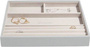 Marka Stackers specjalizuje się w niezwykle eleganckich i praktycznych szkatułkach oraz pudełkach na biżuterię damską i akcesoria męskie. W ofercie znajdują się wykonane z największą dokładnością pudełka oraz etui (również podróżne) do przechowywania biżuterii, zegarków, okularów czy spinek do mankietów. Ogromną zaletą organizerów jest ich modułowość - w zależności od potrzeby możemy dołożyć kolejne piętra lub szufladki, pokrywki oraz wkładki, aby zyskać dodatkową przestrzeń na akcesoria.