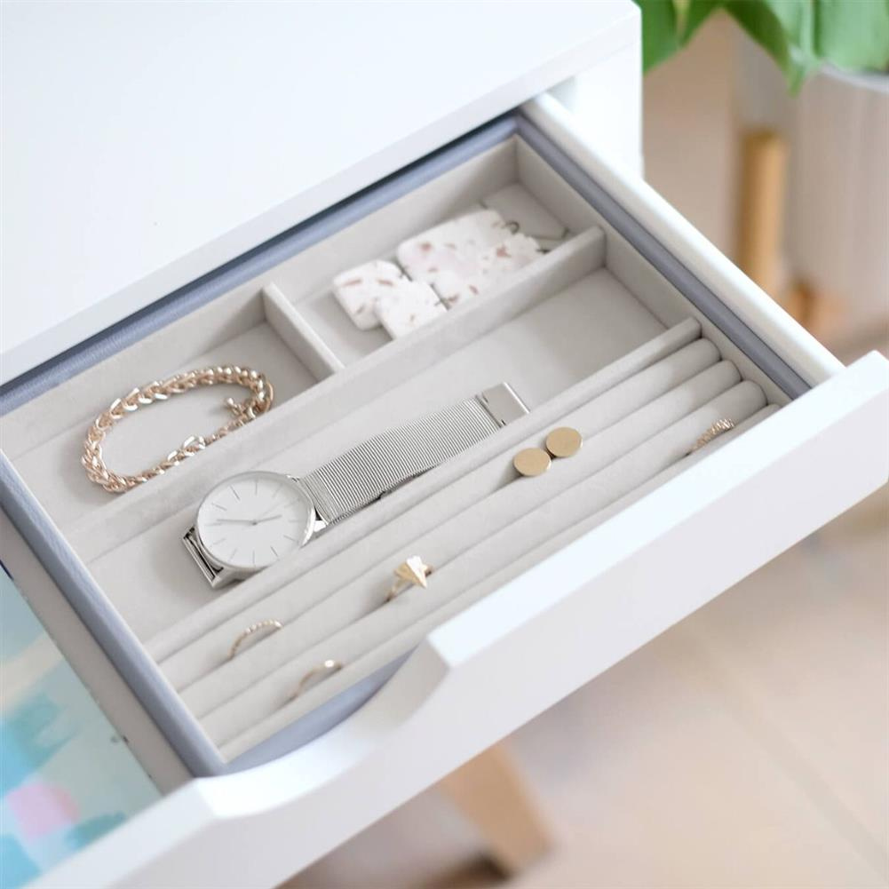 Pudełka na biżuterię Stackers zostały zaprojektowane tak, aby możliwe było stworzenie swojej własnej kombinacji, wybierając warstwy i akcesoria najlepiej pasujące do Twojej kolekcji. Koniec z gubieniem kolczyków i plątaniem się naszyjników! Pudełko Stackers Classic to doskonały punkt wyjścia do stworzenia szkatułki lub jako samodzielny element na toaletce. Przechowuj swoją ulubioną biżuterię bezpiecznie i pięknie zorganizowaną dzięki wszechstronnym przegródkom na pierścionki, kolczyki, naszyjniki i bransoletki. W miarę, jak Twoja kolekcja się powiększa, po prostu dodaj warstwy, które najlepiej pasują do nowych elementów, niezależnie od tego, czy potrzebujesz więcej miejsca na naszyjniki, pierścionki czy charmsy, znajdziesz pudełko, które spełni Twoje oczekiwania. Marka Stackers specjalizuje się w niezwykle eleganckich i praktycznych szkatułkach oraz pudełkach na biżuterię damską i akcesoria męskie. W ofercie znajdują się wykonane z największą dokładnością pudełka oraz etui (również podróżne) do przechowywania biżuterii, zegarków, okularów czy spinek do mankietów. Ogromną zaletą organizerów jest ich modułowość - w zależności od potrzeby możemy dołożyć kolejne piętra lub szufladki, pokrywki oraz wkładki, aby zyskać dodatkową przestrzeń na akcesoria. Angielska marka Stackers to producent stylowych akcesoriów służących do przechowywania biżuterii i porządkowania przestrzeni. Produkty są wykonane z największą dbałością o jakość, dopracowane w formie i przemyślane. Wiele z nich można łączyć ze sobą, aby dopasować je do indywidualnych potrzeb. Dzięki eleganckiej formie sprawdzą się również jako doskonały upominek.