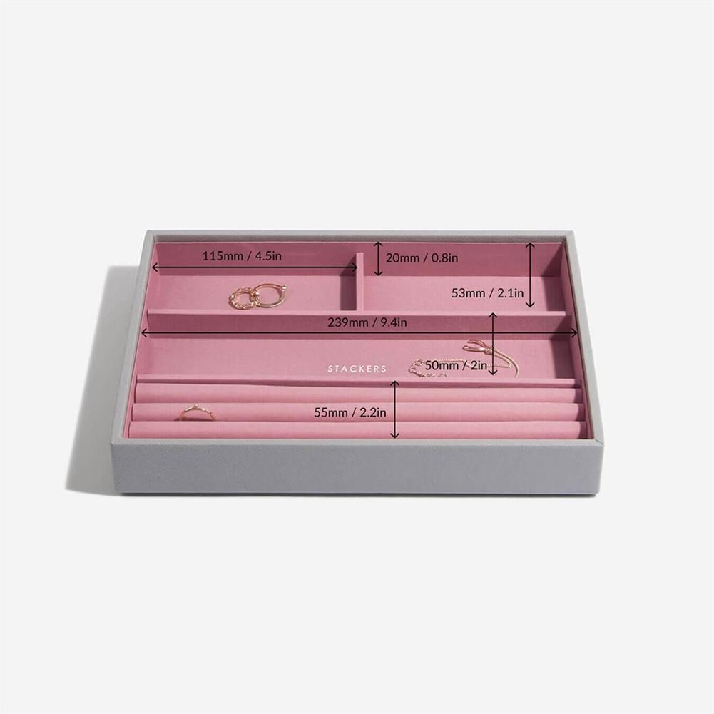 Pudełka na biżuterię Stackers zostały zaprojektowane tak, aby możliwe było stworzenie swojej własnej kombinacji, wybierając warstwy i akcesoria najlepiej pasujące do Twojej kolekcji. Koniec z gubieniem kolczyków i plątaniem się naszyjników! Pudełko Stackers Classic z pokrywą to doskonały punkt wyjścia do stworzenia szkatułki na biżuterię lub jako samodzielny element na toaletce. Przechowuj swoją ulubioną biżuterię bezpiecznie i pięknie zorganizowaną dzięki wszechstronnym przegródkom na pierścionki, kolczyki, naszyjniki i bransoletki. W miarę, jak Twoja kolekcja się powiększa, po prostu dodaj warstwy, które najlepiej pasują do nowych elementów, niezależnie od tego, czy potrzebujesz więcej miejsca na naszyjniki, pierścionki czy charmsy, znajdziesz pudełko, które spełni Twoje oczekiwania.