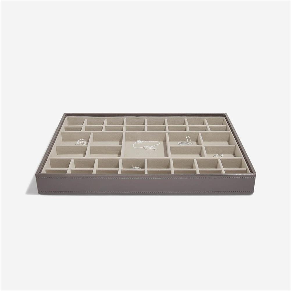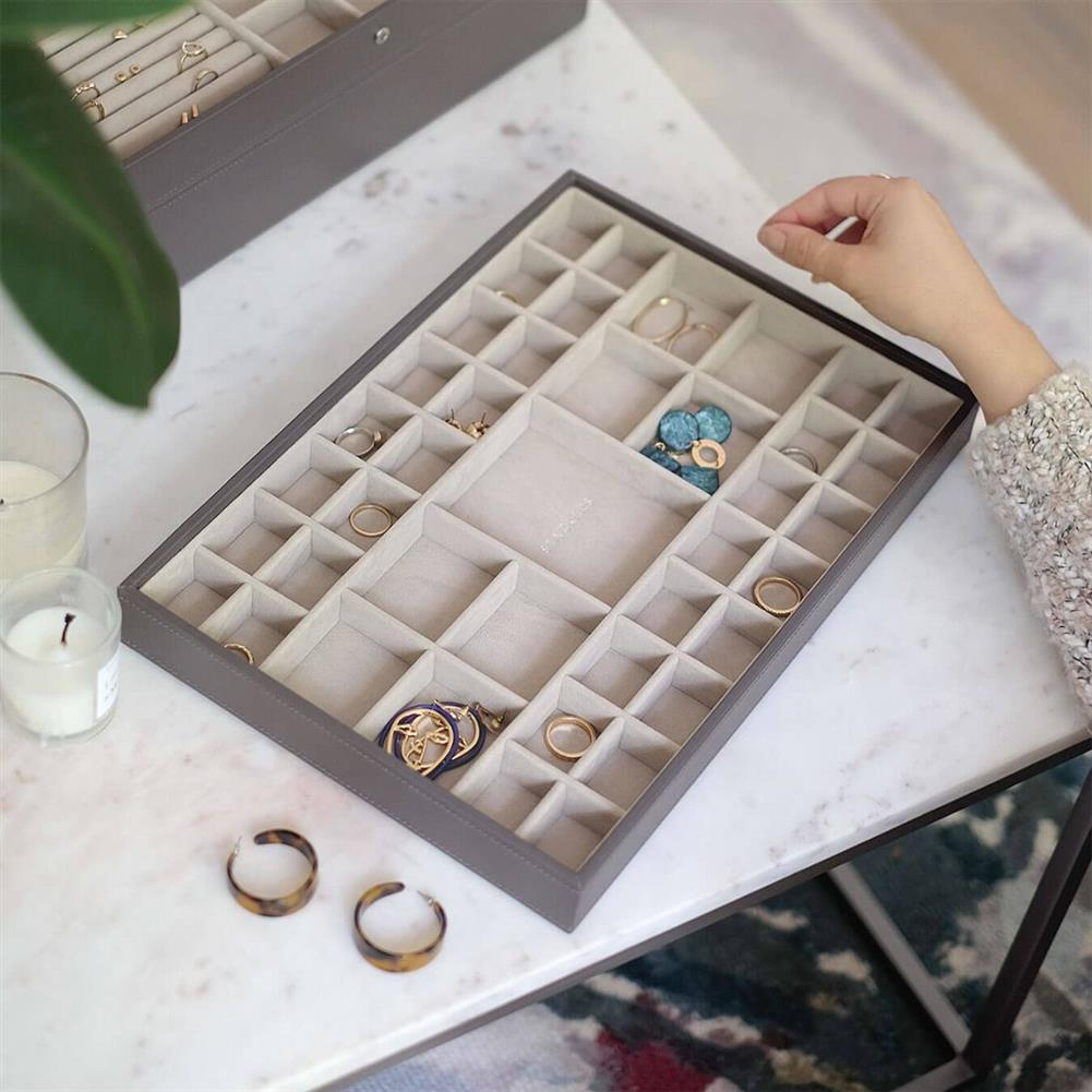 Pudełka na biżuterię Stackers zostały zaprojektowane tak, aby możliwe było stworzenie swojej własnej kombinacji, wybierając warstwy i akcesoria najlepiej pasujące do Twojej kolekcji. Koniec z gubieniem kolczyków i plątaniem się naszyjników! Pudełko Stackers Classic to doskonały punkt wyjścia do stworzenia szkatułki lub jako samodzielny element na toaletce. Przechowuj swoją ulubioną biżuterię bezpiecznie i pięknie zorganizowaną dzięki wszechstronnym przegródkom na pierścionki, kolczyki, naszyjniki i bransoletki. W miarę, jak Twoja kolekcja się powiększa, po prostu dodaj warstwy, które najlepiej pasują do nowych elementów, niezależnie od tego, czy potrzebujesz więcej miejsca na naszyjniki, pierścionki czy charmsy, znajdziesz pudełko, które spełni Twoje oczekiwania. Marka Stackers specjalizuje się w niezwykle eleganckich i praktycznych szkatułkach oraz pudełkach na biżuterię damską i akcesoria męskie. W ofercie znajdują się wykonane z największą dokładnością pudełka oraz etui (również podróżne) do przechowywania biżuterii, zegarków, okularów czy spinek do mankietów. Ogromną zaletą organizerów jest ich modułowość - w zależności od potrzeby możemy dołożyć kolejne piętra lub szufladki, pokrywki oraz wkładki, aby zyskać dodatkową przestrzeń na akcesoria. Angielska marka Stackers to producent stylowych akcesoriów służących do przechowywania biżuterii i porządkowania przestrzeni. Produkty są wykonane z największą dbałością o jakość, dopracowane w formie i przemyślane. Wiele z nich można łączyć ze sobą, aby dopasować je do indywidualnych potrzeb. Dzięki eleganckiej formie sprawdzą się również jako doskonały upominek.