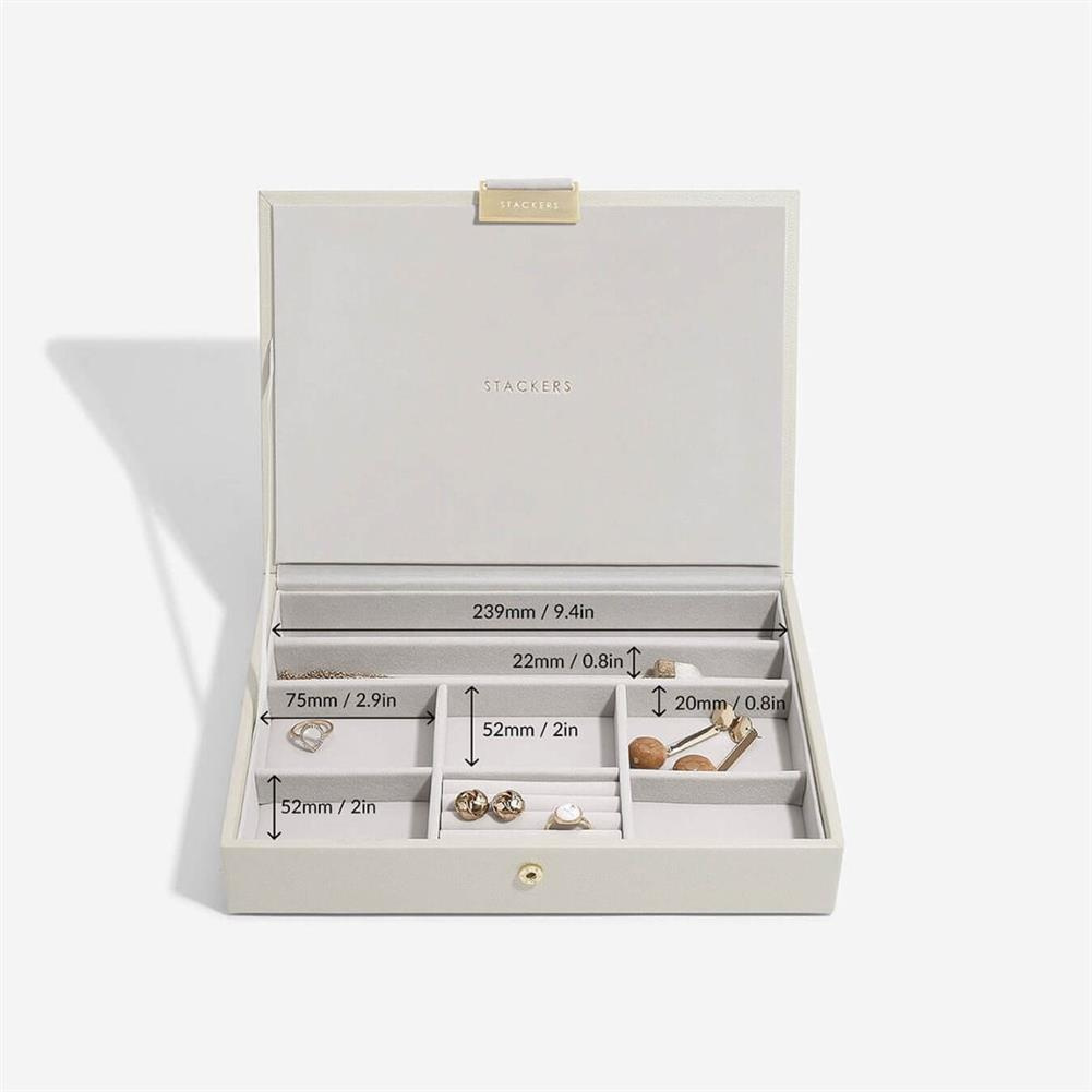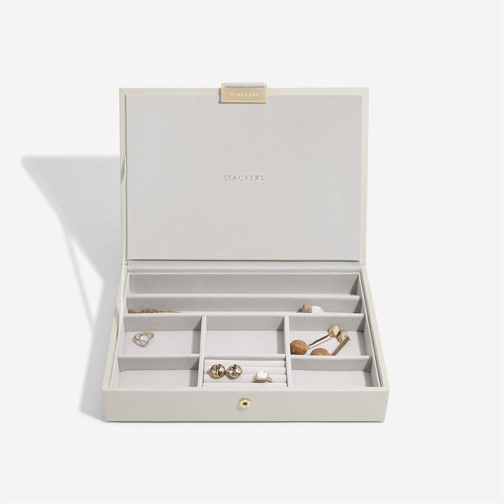 Pudełka angielskiej marki Stackers to niewątpliwie najlepsze miejsce do przechowywania biżuterii i dodatków, takich jak zegarki, czy spinki i to niezależnie od tego, czy mamy ich niewiele, czy też bardzo dużo (a kobiety zazwyczaj tak mają;)). Pudełka od Stackers to bowiem pudełka pojedyncze, podwójne lub potrójne i to zarówno w opcjach mini, jak i supersize. Dzięki wykonaniu z najwyższej jakości materiałów, stylowym kolorom i różnym wielkościom i ilościom przegródek dopasowanych do indywidualnego zapotrzebowania, będą nie tylko najlepszymi przyjaciółmi kobiety (zaraz po diamentach), ale również doskonałym pomysłem na prezent - dla Niej (dziewczyny, żony, kochanki ;), mamy, przyjaciółki, koleżanki z pracy, czy teściowej) jak i dla Niego (narzeczonego, męża, taty, czy szefa).