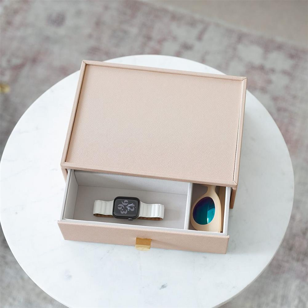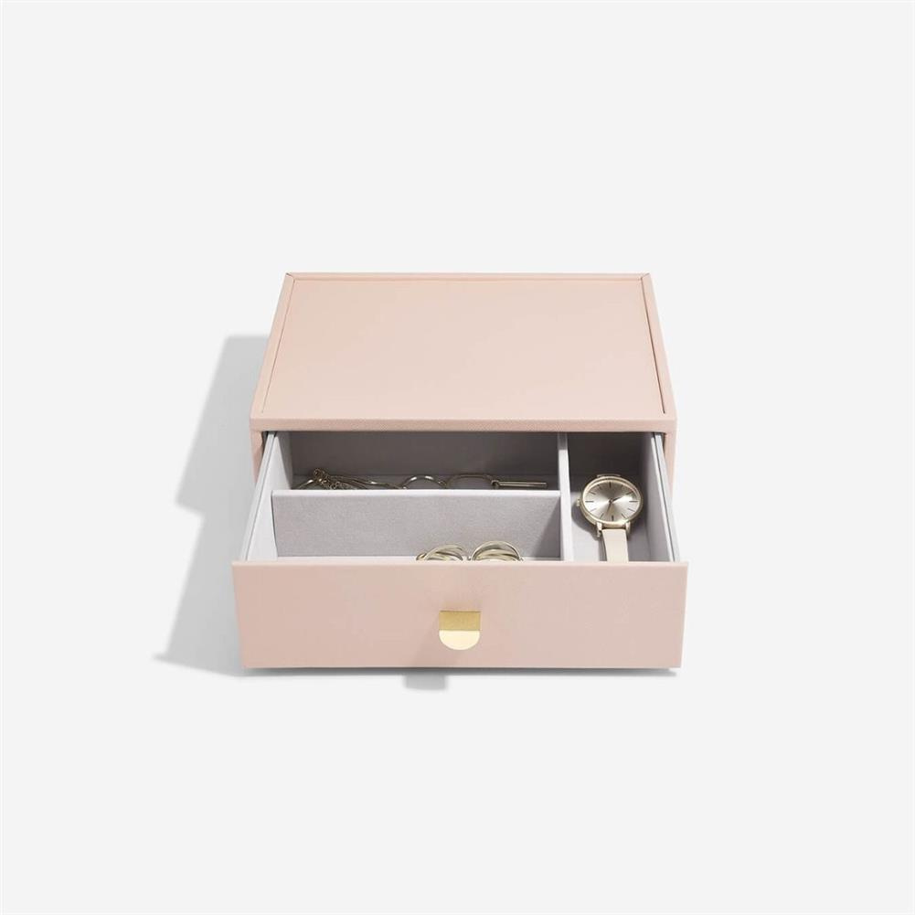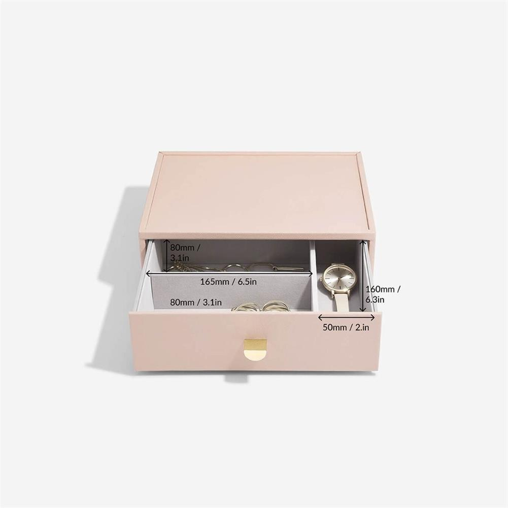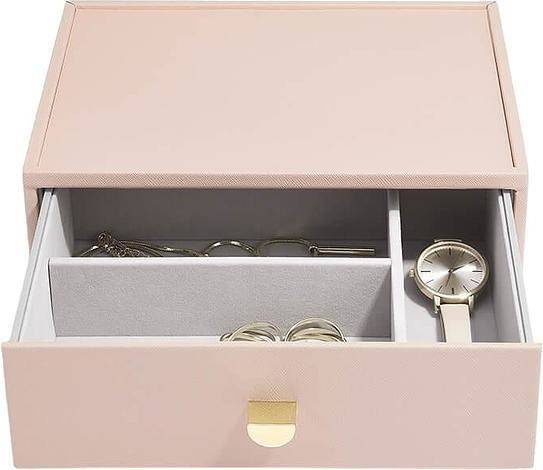 Pudełko na biżuterię Stackers zostało zaprojektowane tak, aby możliwe było stworzenie swojej własnej kombinacji, wybierając warstwy i akcesoria najlepiej pasujące do kolekcji biżuterii. Szkatułka może być również idealnym rozwiązaniem do przechowywania w szufladzie, jeśli chcesz zachować porządek na toaletce. Dodaj tę warstwę do swojej szkatułki na biżuterię, aby zyskać dodatkowe miejsce na pierścionki i bransoletki, a może nawet naszyjnik lub dwa. Dobra rada: Większe przegródki są również idealne na kolczyki!