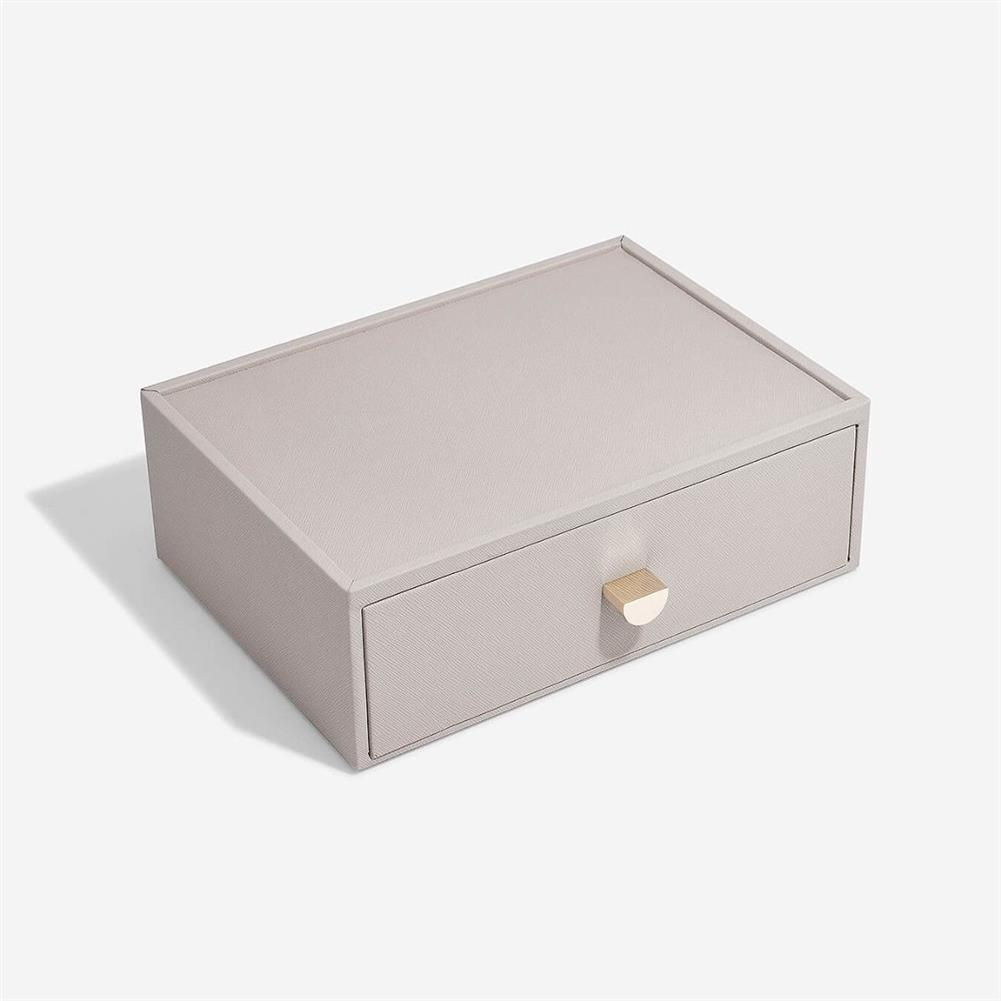 Marka Stackers specjalizuje się w niezwykle eleganckich i praktycznych szkatułkach oraz pudełkach na biżuterię damską i akcesoria męskie. W ofercie znajdują się wykonane z największą dokładnością pudełka oraz etui (również podróżne) do przechowywania biżuterii, zegarków, okularów czy spinek do mankietów. Ogromną zaletą organizerów jest ich modułowość - w zależności od potrzeby możemy dołożyć kolejne piętra lub szufladki, pokrywki oraz wkładki, aby zyskać dodatkową przestrzeń na akcesoria.
