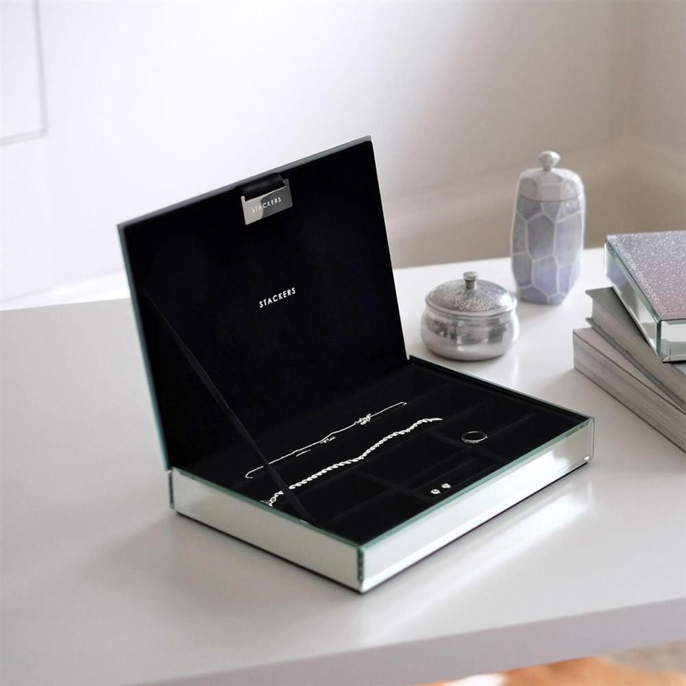 Szkatułka na biżuterię Stackers classic velvet szklana z pokrywką z czarną wyściółką