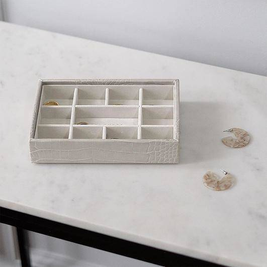 Pudełko na biżuterię Stackers zostało zaprojektowane tak, aby możliwe było stworzenie swojej własnej kombinacji, wybierając warstwy i akcesoria najlepiej pasujące do kolekcji. Zewnętrzna strona z efektem skóry krokodyla i luksusowa, aksamitna wyściółka sprawiają, że jest to idealna szkatułka na zegarki i bransoletki.