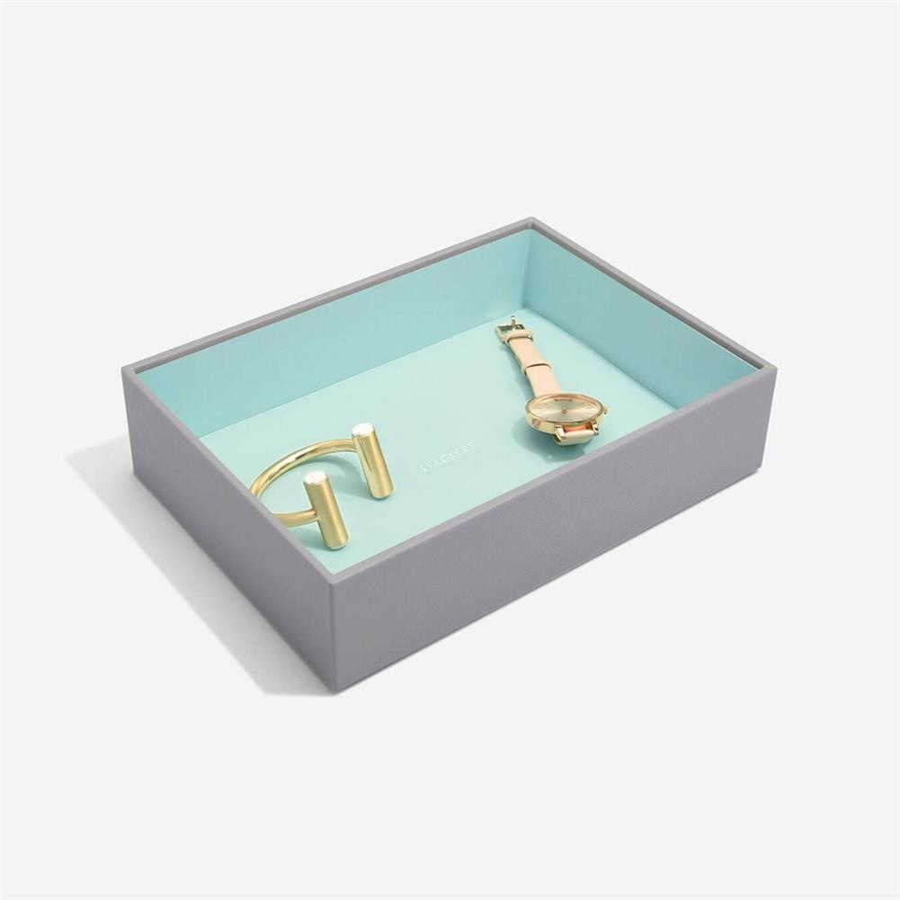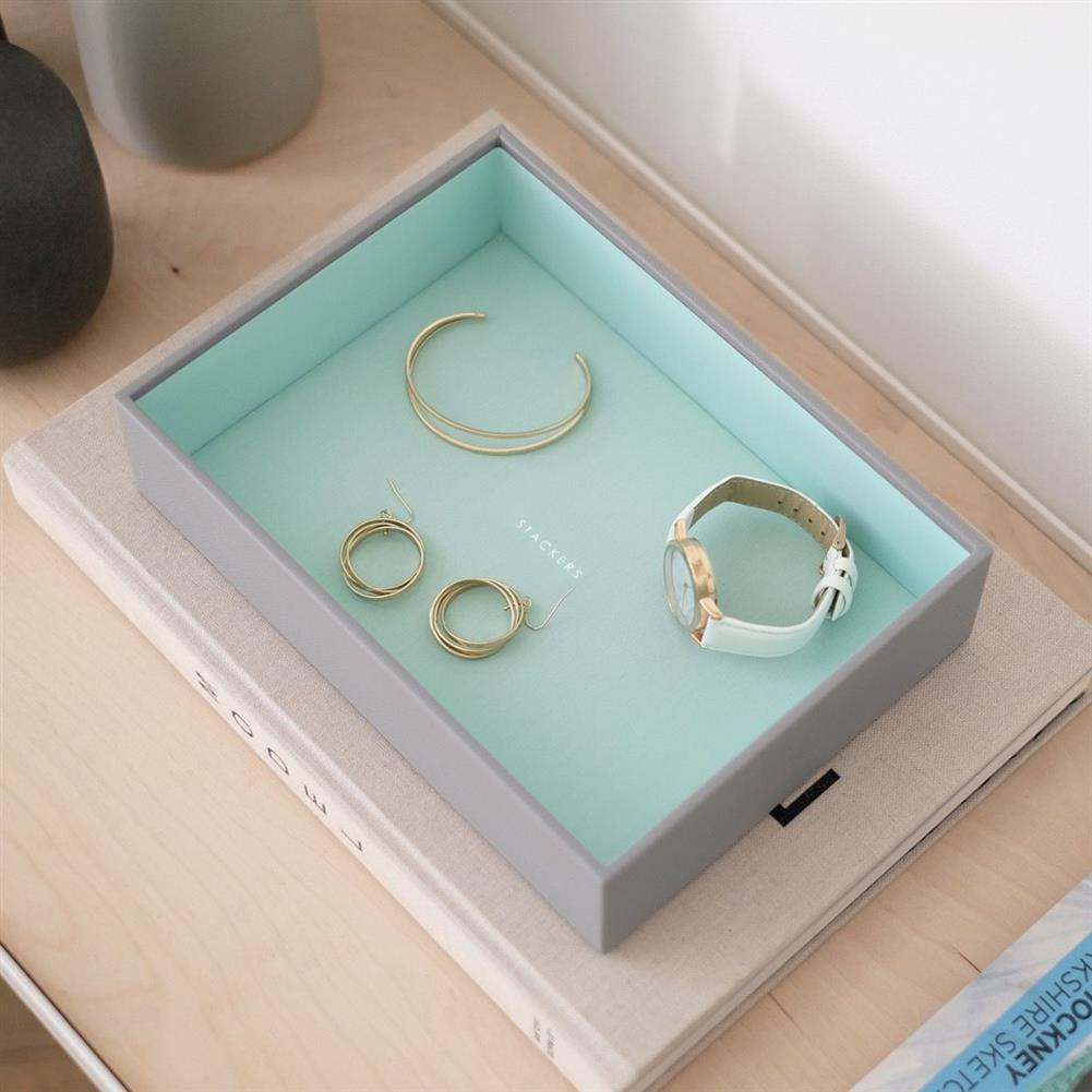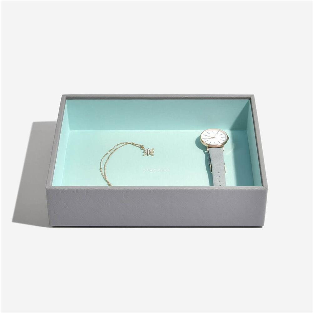 Nie będzie już wymówki dla braku organizacji Twojej biżuterii! Szkatułka na biżuterię Stackers pięcioelementowa classic jest idealna dla prawie każdej kolekcji. Dzięki dużej ilości miejsca można w niej przechowywać naszyjniki, pierścionki, kolczyki, zegarki i wiele innych dodatków, pięknie uporządkowanych i bezpiecznych. Zestaw 5 pudełek jest idealny dla osób z większą ilością biżuterii. Zawiera pokrywę pudełka na biżuterię, warstwę na drobiazgi, warstwę na pierścionki i bransoletki, warstwę na zegarki i akcesoria oraz warstwę na ozdoby. Marka Stackers specjalizuje się w niezwykle eleganckich i praktycznych szkatułkach oraz pudełkach na biżuterię damską i akcesoria męskie. W ofercie znajdują się wykonane z największą dokładnością pudełka oraz etui (również podróżne) do przechowywania biżuterii, zegarków, okularów czy spinek do mankietów. Ogromną zaletą organizerów jest ich modułowość - w zależności od potrzeby możemy dołożyć kolejne piętra lub szufladki, pokrywki oraz wkładki, aby zyskać dodatkową przestrzeń na akcesoria. Angielska marka Stackers to producent stylowych akcesoriów służących do przechowywania biżuterii i porządkowania przestrzeni. Produkty są wykonane z największą dbałością o jakość, dopracowane w formie i przemyślane. Wiele z nich można łączyć ze sobą, aby dopasować je do indywidualnych potrzeb. Dzięki eleganckiej formie sprawdzą się również jako doskonały upominek.