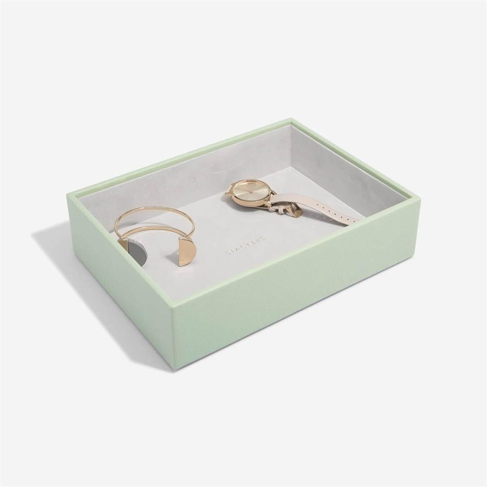 Pudełko na biżuterię Stackers zostało zaprojektowane tak, aby możliwe było stworzenie swojej własnej kombinacji, wybierając warstwy i akcesoria najlepiej pasujące do kolekcji. Szkatułki mogą być również wykorzystane do przechowywania biżuterii w szufladzie, jeśli chcesz zachować porządek na toaletce. Jesteś miłośniczką naszyjników? Nie ma problemu. Szkatułka na biżuterię Stackers pięciokomorowa została zaprojektowana tak, aby utrzymać naszyjniki w porządku i uniknąć ich plątania się.