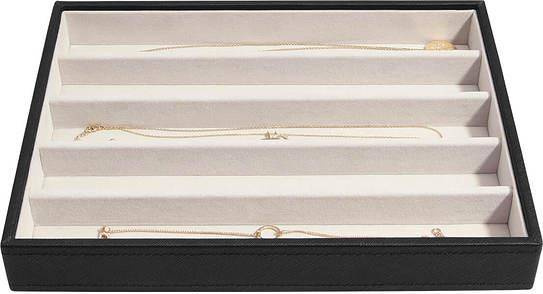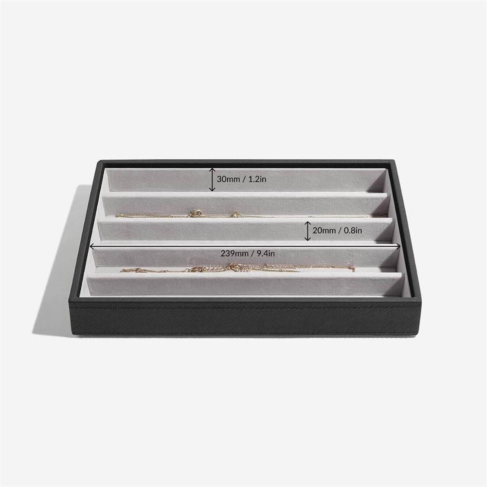 Mini szkatułka jest idealna dla osób rozpoczynających kolekcjonowanie biżuterii. Pokrywka pudełka na biżuterię pomieści pierścionki, kolczyki i naszyjniki, a warstwa na zegarki i akcesoria jest idealna do przechowywania wkładki z pierścionkami, poduszki na zegarek lub ozdobnych opakowań, które czasem lubimy zachować na pamiątkę. Przechowuj swoją stale powiększającą się kolekcję bez plątaniny i w doskonałym porządku. Zestaw mini obejmuje pokrywę pudełka na biżuterię oraz warstwę na zegarki lub akcesoria. Marka Stackers specjalizuje się w niezwykle eleganckich i praktycznych szkatułkach oraz pudełkach na biżuterię damską i akcesoria męskie. W ofercie znajdują się wykonane z największą dokładnością pudełka oraz etui (również podróżne) do przechowywania biżuterii, zegarków, okularów czy spinek do mankietów. Ogromną zaletą organizerów jest ich modułowość - w zależności od potrzeby możemy dołożyć kolejne piętra lub szufladki, pokrywki oraz wkładki, aby zyskać dodatkową przestrzeń na akcesoria. Angielska marka Stackers to producent stylowych akcesoriów służących do przechowywania biżuterii i porządkowania przestrzeni. Produkty są wykonane z największą dbałością o jakość, dopracowane w formie i przemyślane. Wiele z nich można łączyć ze sobą, aby dopasować je do indywidualnych potrzeb. Dzięki eleganckiej formie sprawdzą się również jako doskonały upominek.