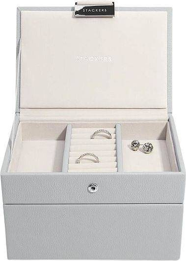 Marka Stackers specjalizuje się w niezwykle eleganckich i praktycznych szkatułkach oraz pudełkach na biżuterię damską i akcesoria męskie. W ofercie znajdują się wykonane z największą dokładnością pudełka oraz etui (również podróżne) do przechowywania biżuterii, zegarków, okularów czy spinek do mankietów. Ogromną zaletą organizerów jest ich modułowość - w zależności od potrzeby możemy dołożyć kolejne piętra lub szufladki, pokrywki oraz wkładki, aby zyskać dodatkową przestrzeń na akcesoria.