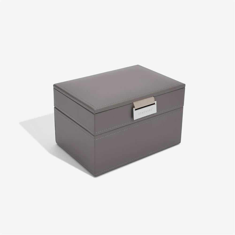 Szkatułka na biżuterię Stackers podwójna mini szaro-beżowa