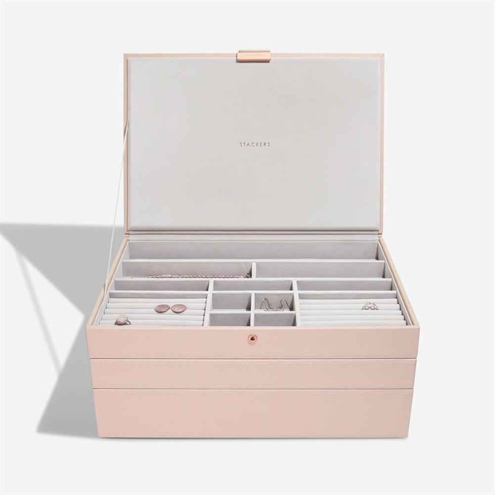 Szkatułka na biżuterię Stackers potrójna supersize jasnoróżowo-szara