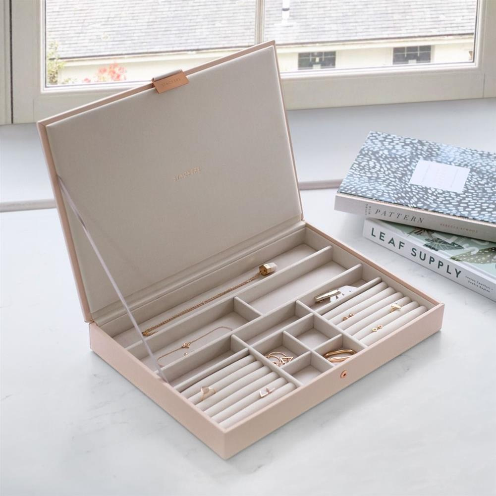 Szkatułka na biżuterię Stackers supersize jasnoróżowo-szara velvet z pokrywką