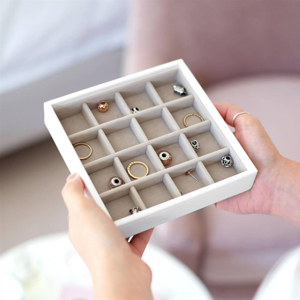 Marka Stackers specjalizuje się w niezwykle eleganckich i praktycznych szkatułkach oraz pudełkach na biżuterię damską i akcesoria męskie. W ofercie znajdują się wykonane z największą dokładnością pudełka oraz etui (również podróżne) do przechowywania biżuterii, zegarków, okularów czy spinek do mankietów. Ogromną zaletą organizerów jest ich modułowość - w zależności od potrzeby możemy dołożyć kolejne piętra lub szufladki, pokrywki oraz wkładki, aby zyskać dodatkową przestrzeń na akcesoria.