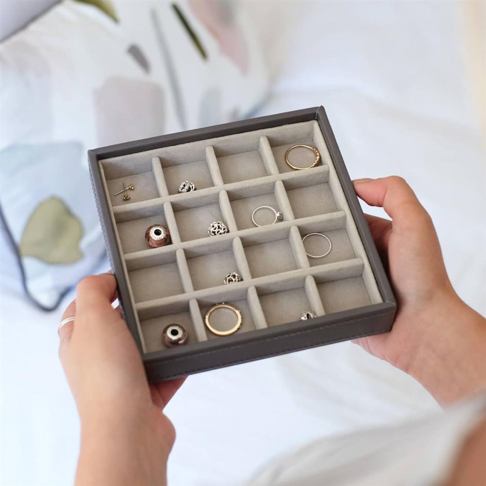 Szkatułka na charmsy Stackers 16 komorowa szaro-beżowa