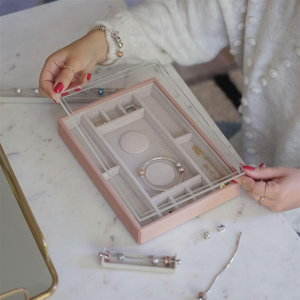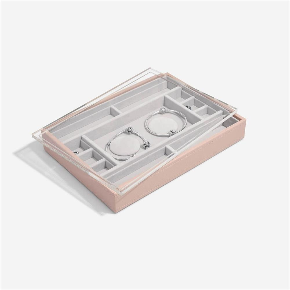 Szkatułka na charmsy Stackers jasnoróżowa z przegródkami i pokrywką