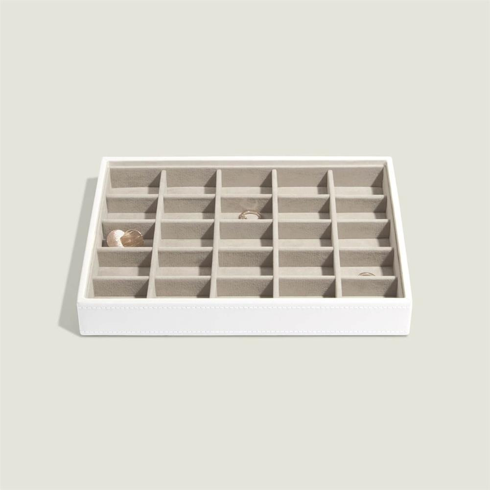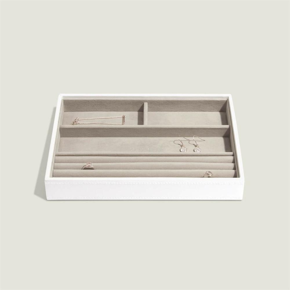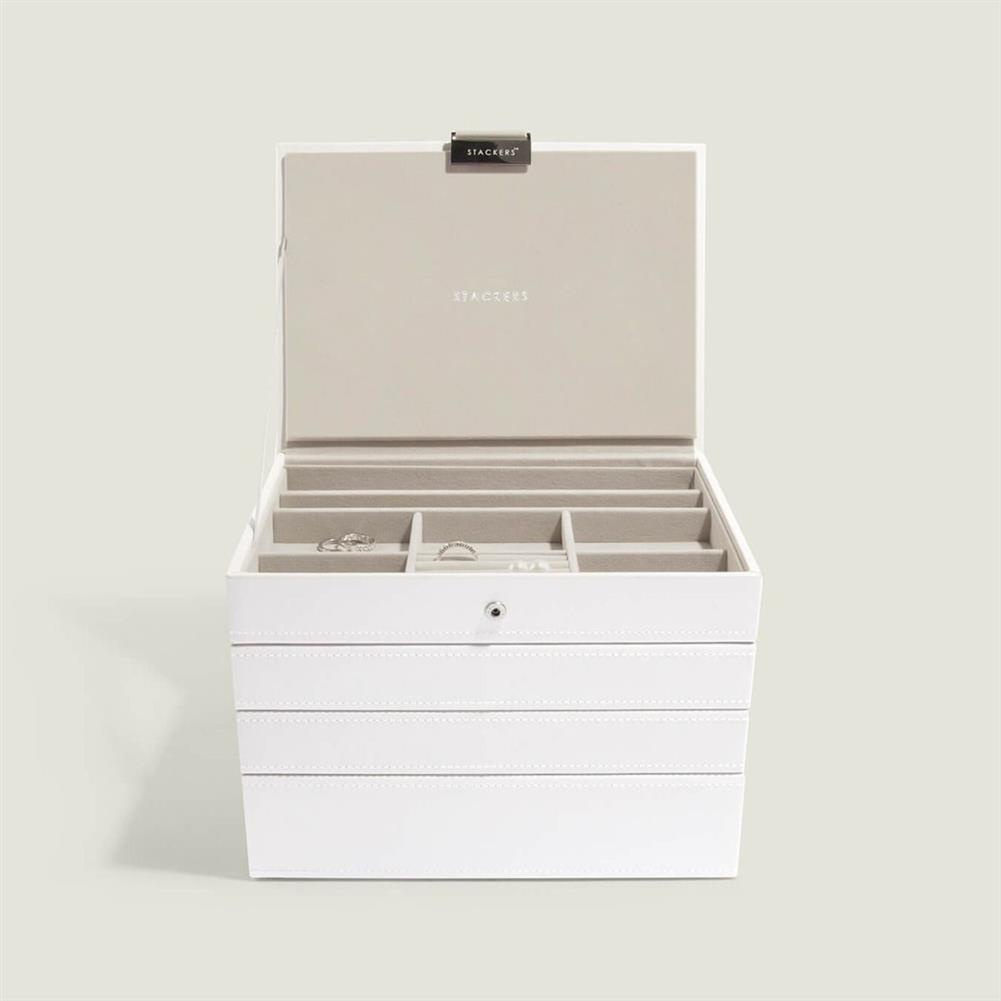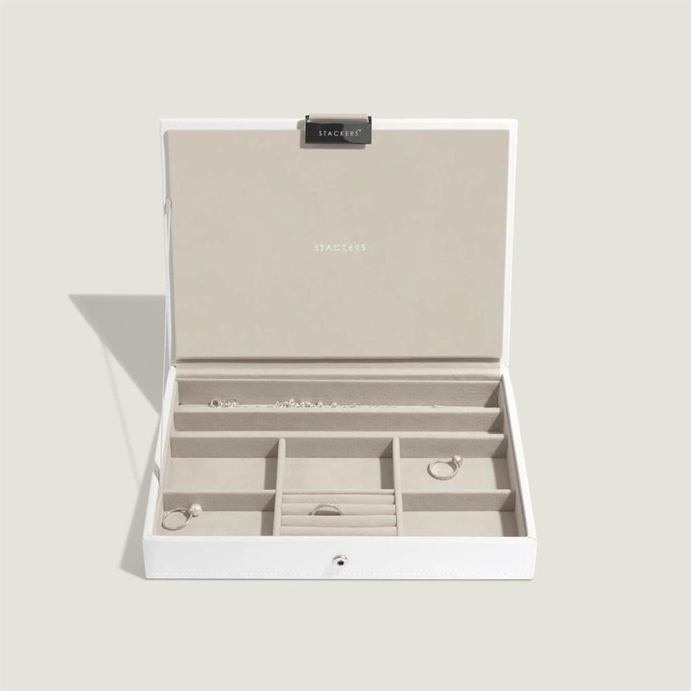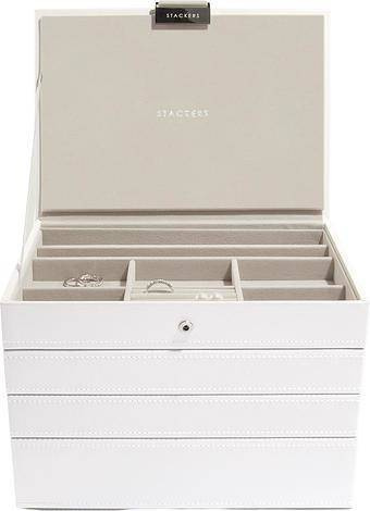 Marka Stackers specjalizuje się w niezwykle eleganckich i praktycznych szkatułkach oraz pudełkach na biżuterię damską i akcesoria męskie. W ofercie znajdują się wykonane z największą dokładnością pudełka oraz etui (również podróżne) do przechowywania biżuterii, zegarków, okularów czy spinek do mankietów. Ogromną zaletą organizerów jest ich modułowość - w zależności od potrzeby możemy dołożyć kolejne piętra lub szufladki, pokrywki oraz wkładki, aby zyskać dodatkową przestrzeń na akcesoria.