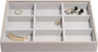 Szkatułka na biżuterię Stackers 9 komorowa classic jest idealna dla Twojej kolekcji, pięknie wyeksponuje zawartość a miękka, aksamitna wyściółka zapewni jej bezpieczeństwo i ochronę. Można ją układać w stos z dodatkowymi szufladami w rozmiarze Classic. Twoja kolekcja wciąż się powiększa? Nie ma problemu, dodaj tyle dodatkowych szuflad, ile potrzebujesz! Przechowuj swoje skarby bezpiecznie i pięknie zorganizowane dzięki uniwersalnym przegródkom na pierścionki, kolczyki, naszyjniki i bransoletki.