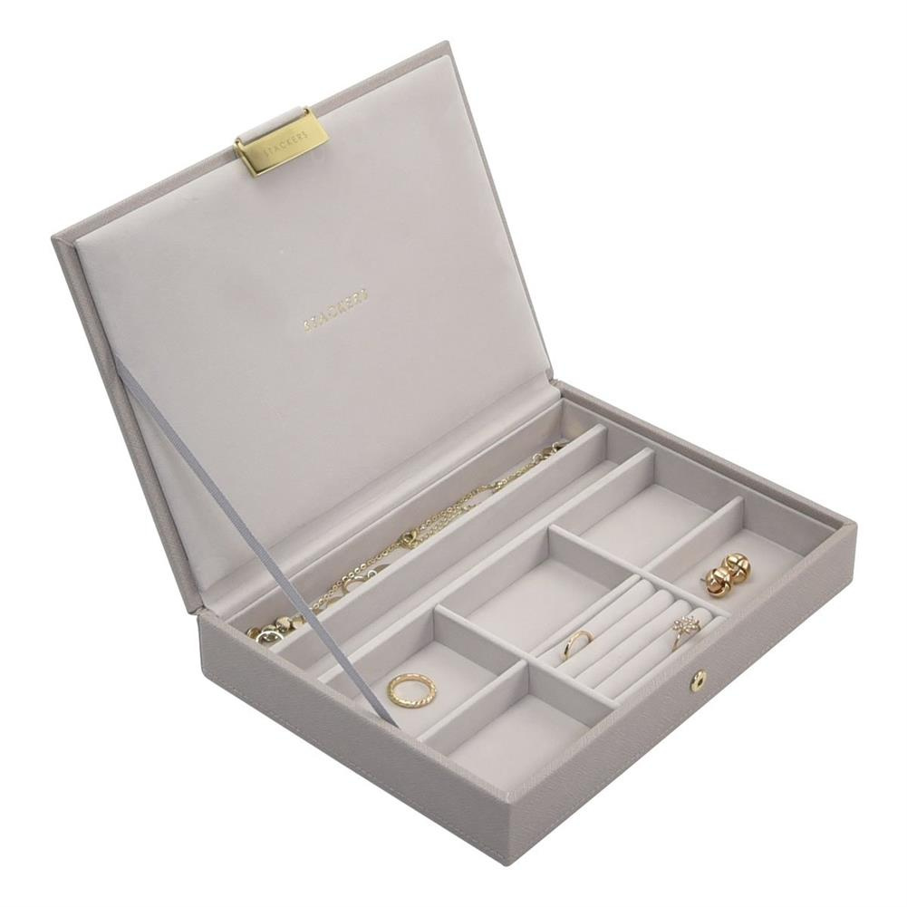 Pudełka angielskiej marki Stackers to niewątpliwie najlepsze miejsce do przechowywania biżuterii i dodatków, takich jak zegarki, czy spinki i to niezależnie od tego, czy mamy ich niewiele, czy też bardzo dużo (a kobiety zazwyczaj tak mają;)). Pudełka od Stackers to bowiem pudełka pojedyncze, podwójne lub potrójne i to zarówno w opcjach mini, jak i supersize. Dzięki wykonaniu z najwyższej jakości materiałów, stylowym kolorom i różnym wielkościom i ilościom przegródek dopasowanych do indywidualnego zapotrzebowania, będą nie tylko najlepszymi przyjaciółmi kobiety (zaraz po diamentach), ale również doskonałym pomysłem na prezent - dla Niej (dziewczyny, żony, kochanki ;), mamy, przyjaciółki, koleżanki z pracy, czy teściowej) jak i dla Niego (narzeczonego, męża, taty, czy szefa).