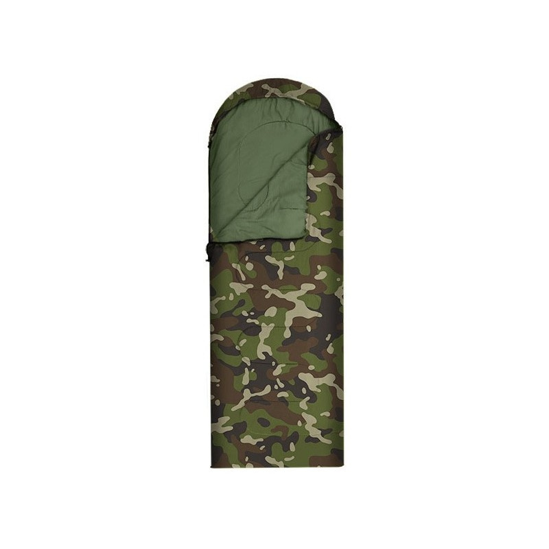 Śpiwór ma idealny kształt MUMII - szeroki przy głowie (specjalny kształt jak kaptur) i węższy w nogach.