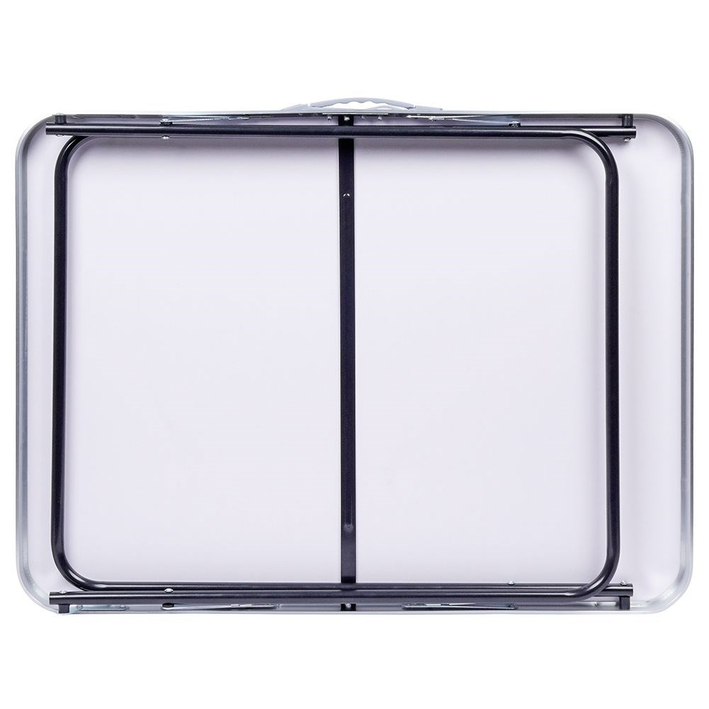 - SKŁADANY - Stolik jest wygodny podczas transportu, po złożeniu zajmuje bardzo mało miejsca. Wymiary po złożeniu 80 x 61,5 x 6 cm. Stolik składa się w łatwy sposób, a po złożeniu posiada wygodny uchwyt, który ułatwi przenoszenie go. Pod spodem blatu mamy dedykowane miejsce do przechowywania nóg stołu.