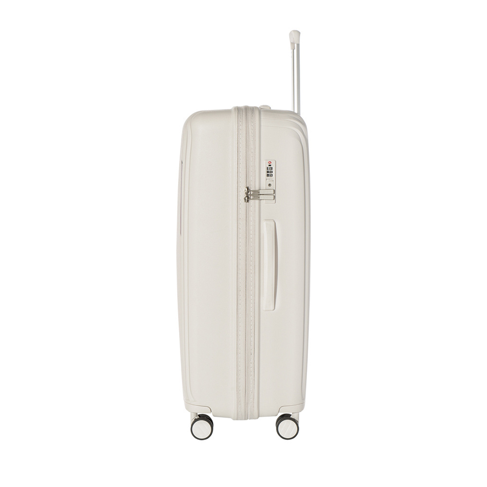 • walizka twarda wykonana z polipropylenu, materiału charakteryzującego się super lekką wagą i niezwykłą wytrzymałością