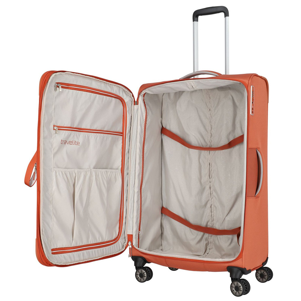 - wewnątrz regulowane pasy spinające, zapobiegające przemieszczaniu się bagażu