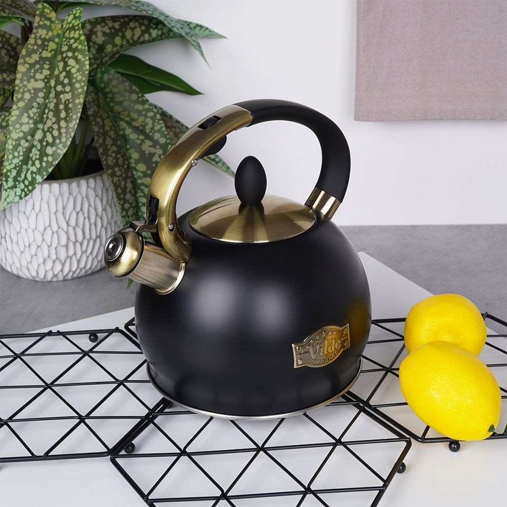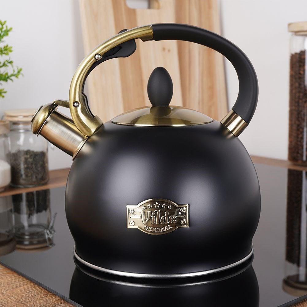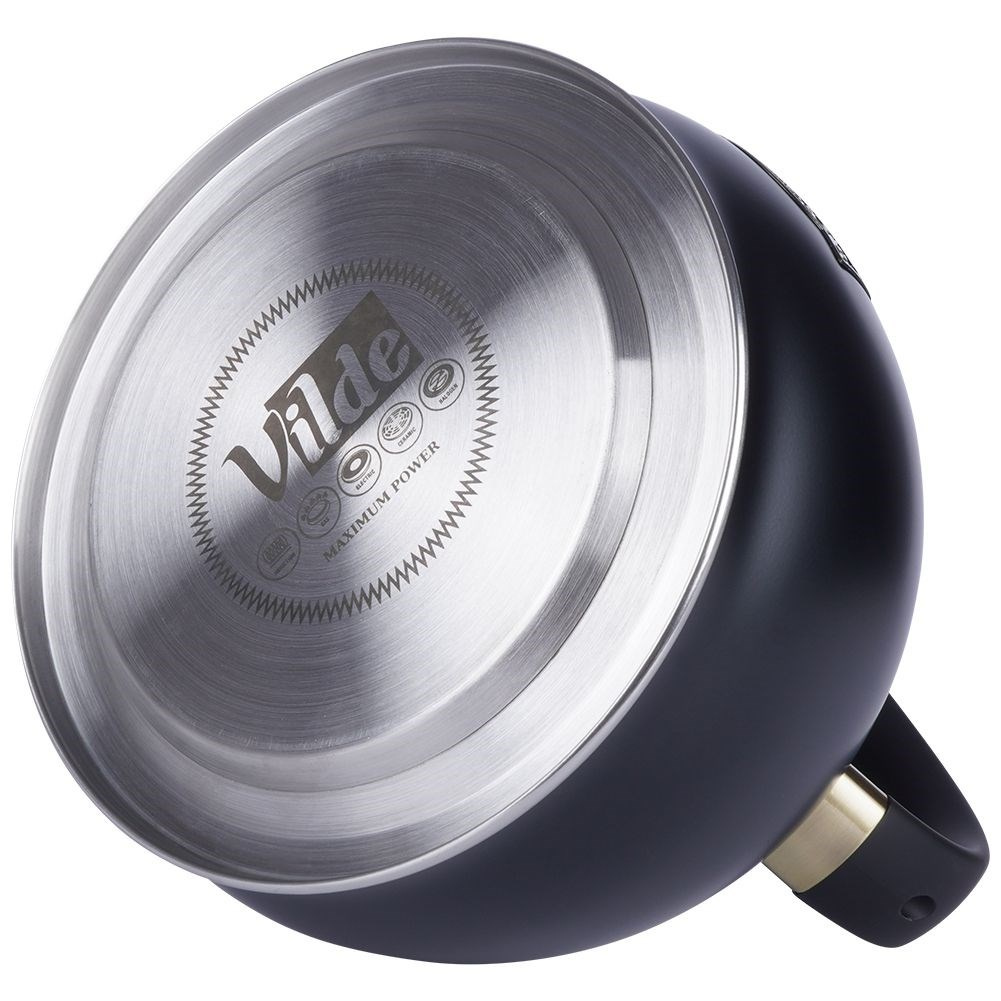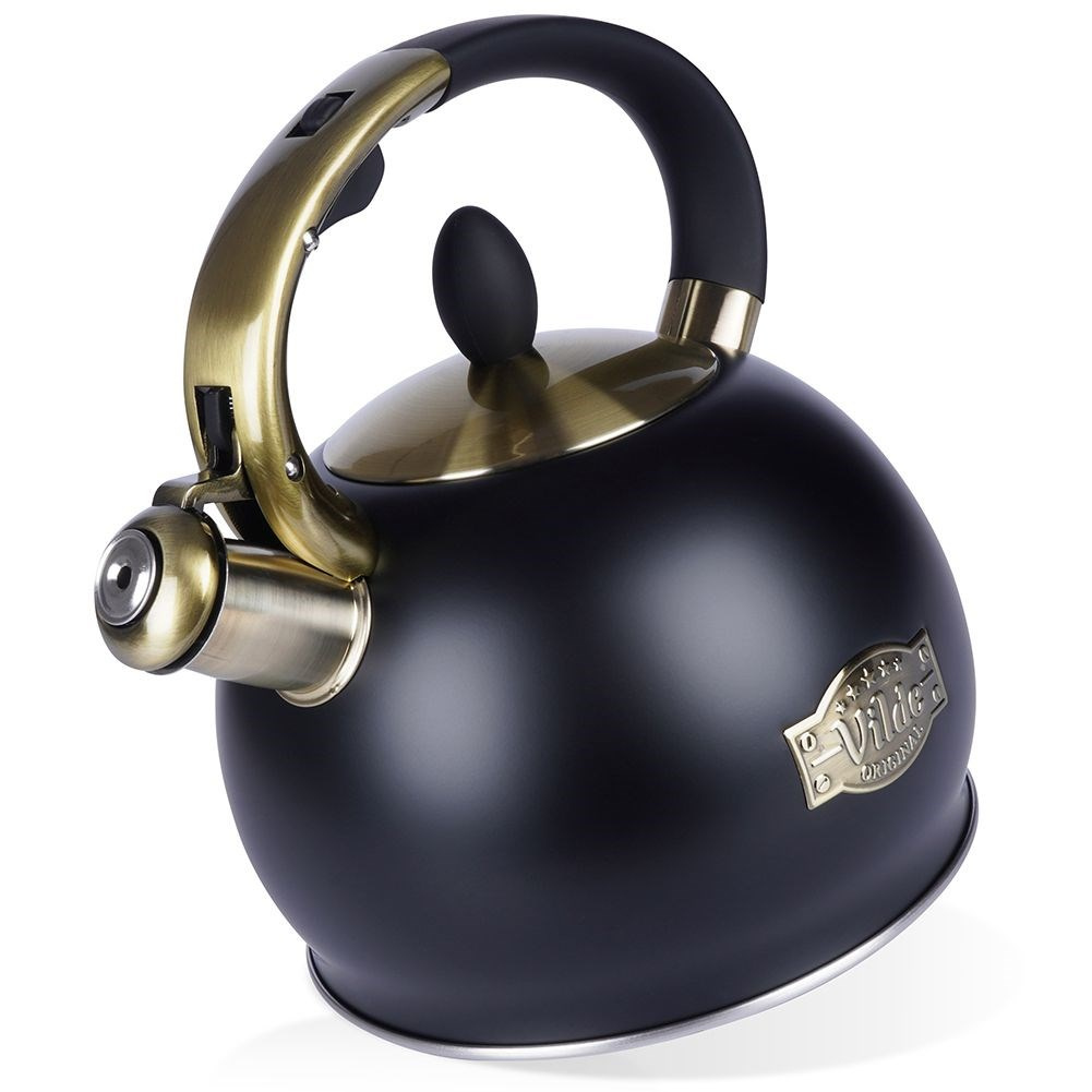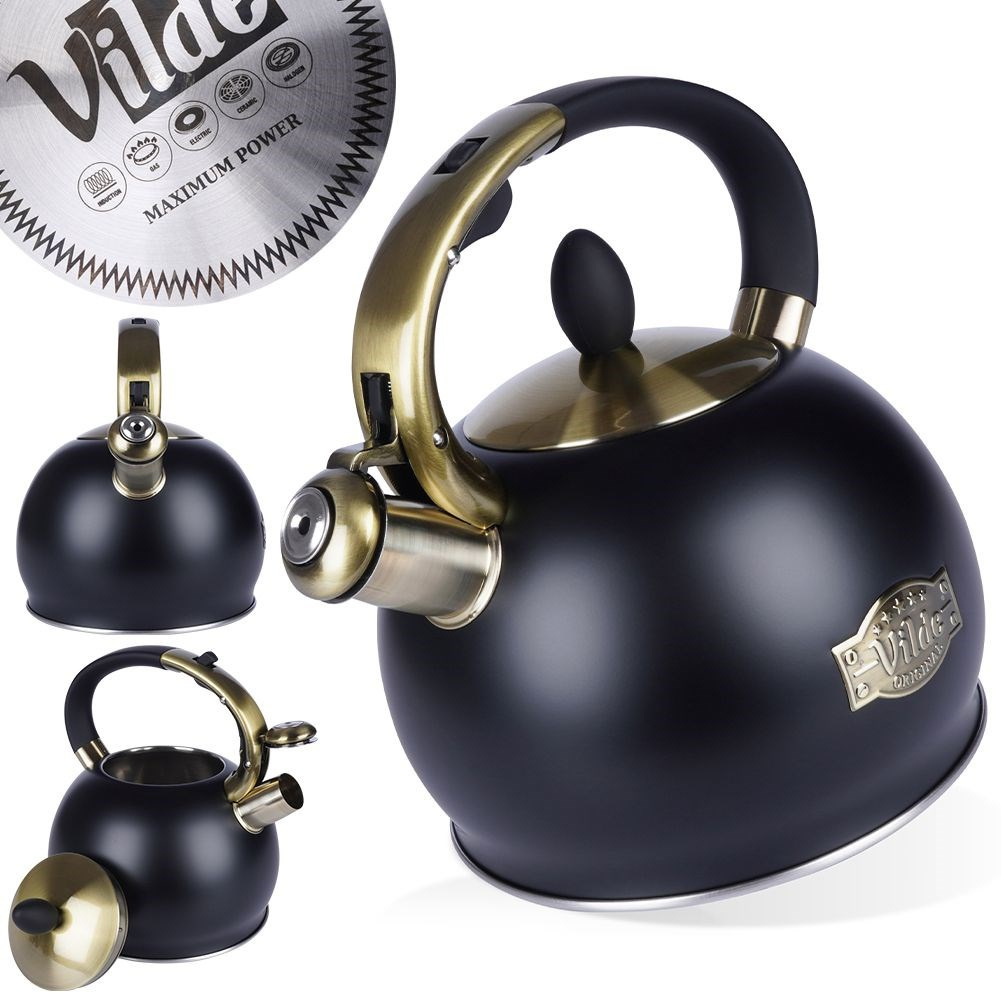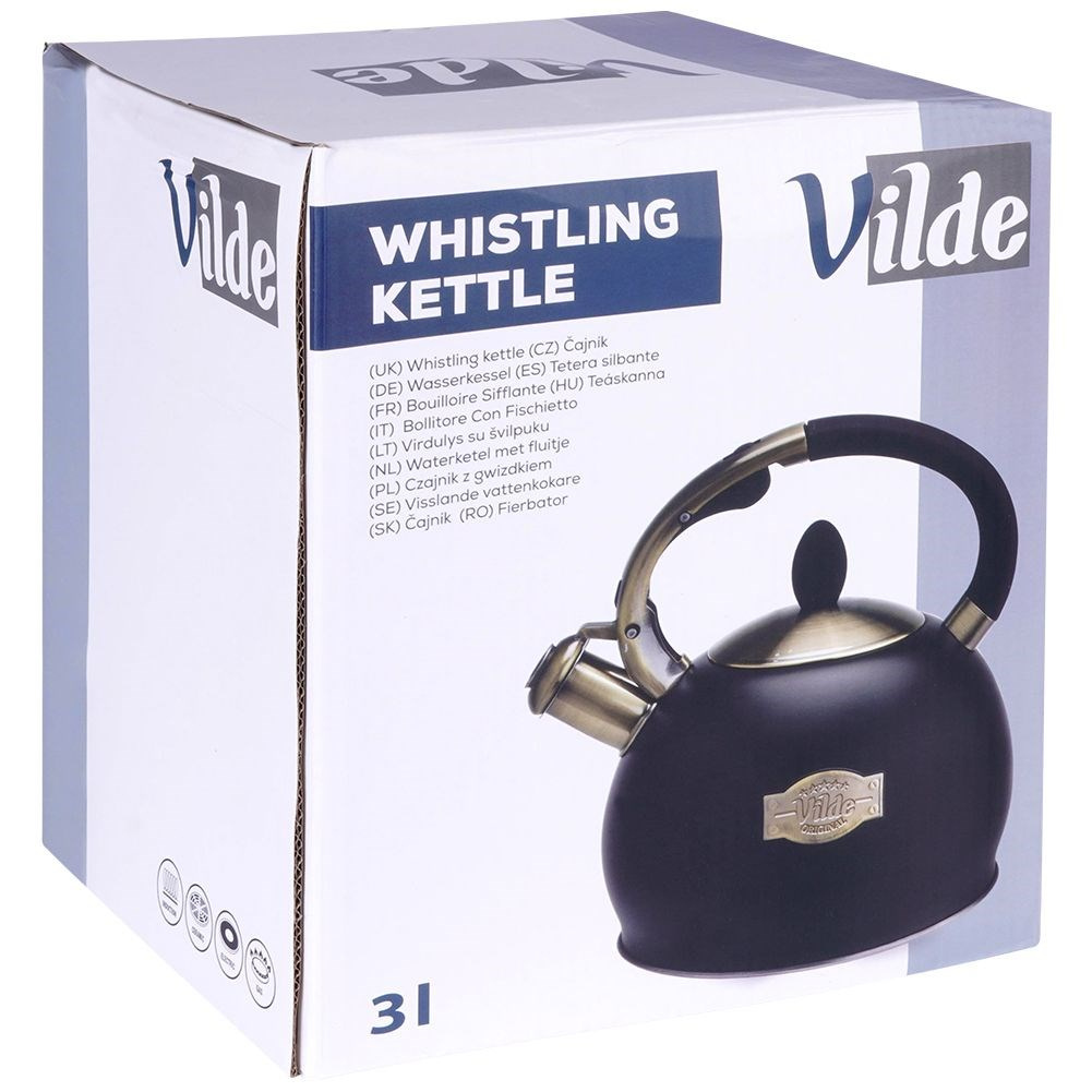 Efektowny czajnik wykonany z najwyższej jakości materiałów. Wykorzystamy go do zagotowania wody na kawę, herbatę czy do zaparzenia ziół. Wygodny w użytkowaniu, dzięki rączce, pokrywce oraz automatycznemu gwizdkowi. Wodę w czajniku zagotujemy bardzo szybko, a czyszczenie go jest bardzo wygodne. Czajnik jest świetnym pomysłem na prezent. UWAGA! Czajnik do gotowania musi być napełniony co najmniej do połowy aby zapobiec przegrzaniu. Zmiany koloru na powierzchni zewnętrznej w przypadku nieprzestrzegania minimalnych parametrów użytkowych nie mogą być powodem do reklamacji. Oryginalny produkt marki Vilde. Wyprodukowano zgodnie z europejskimi standardami.
