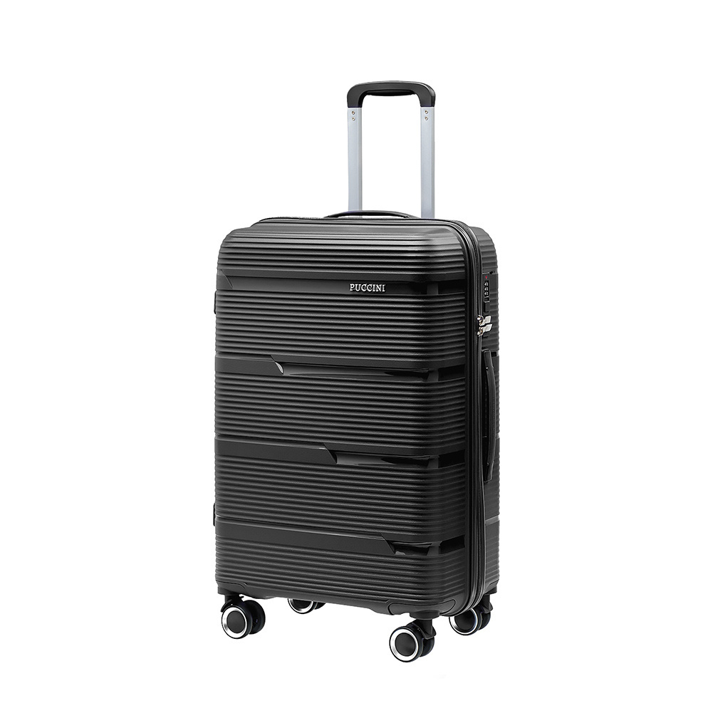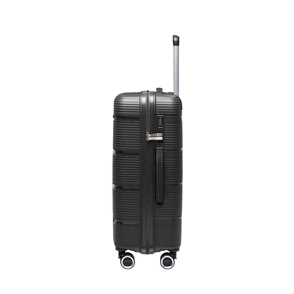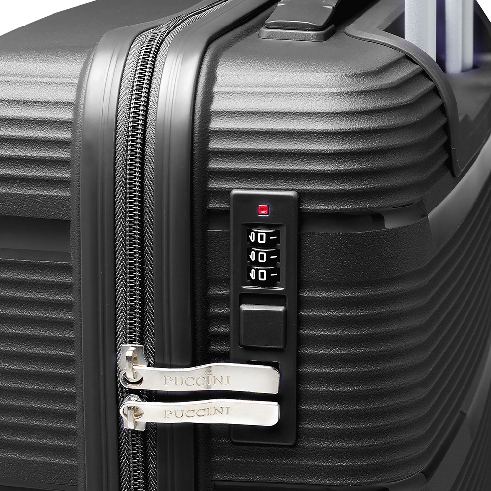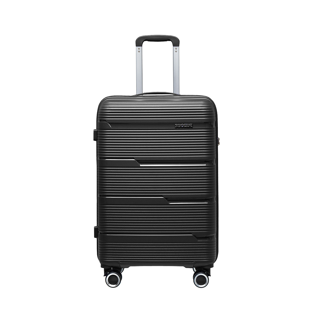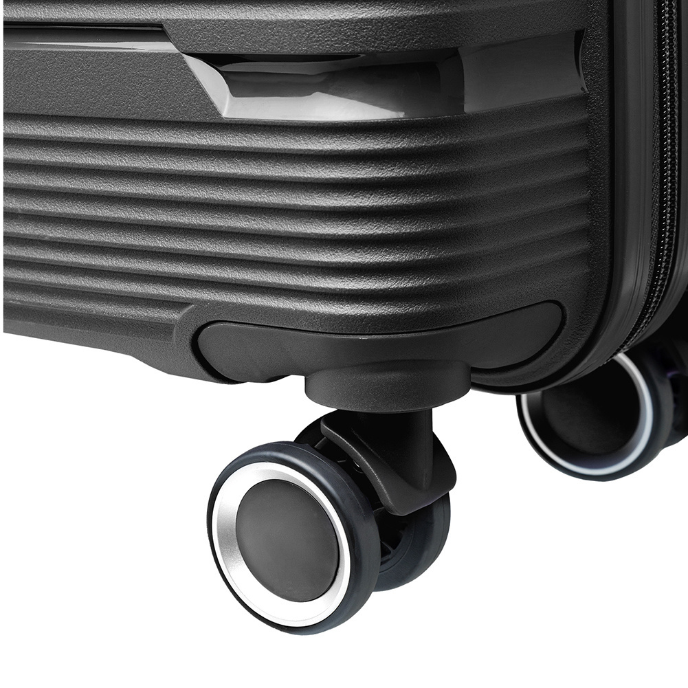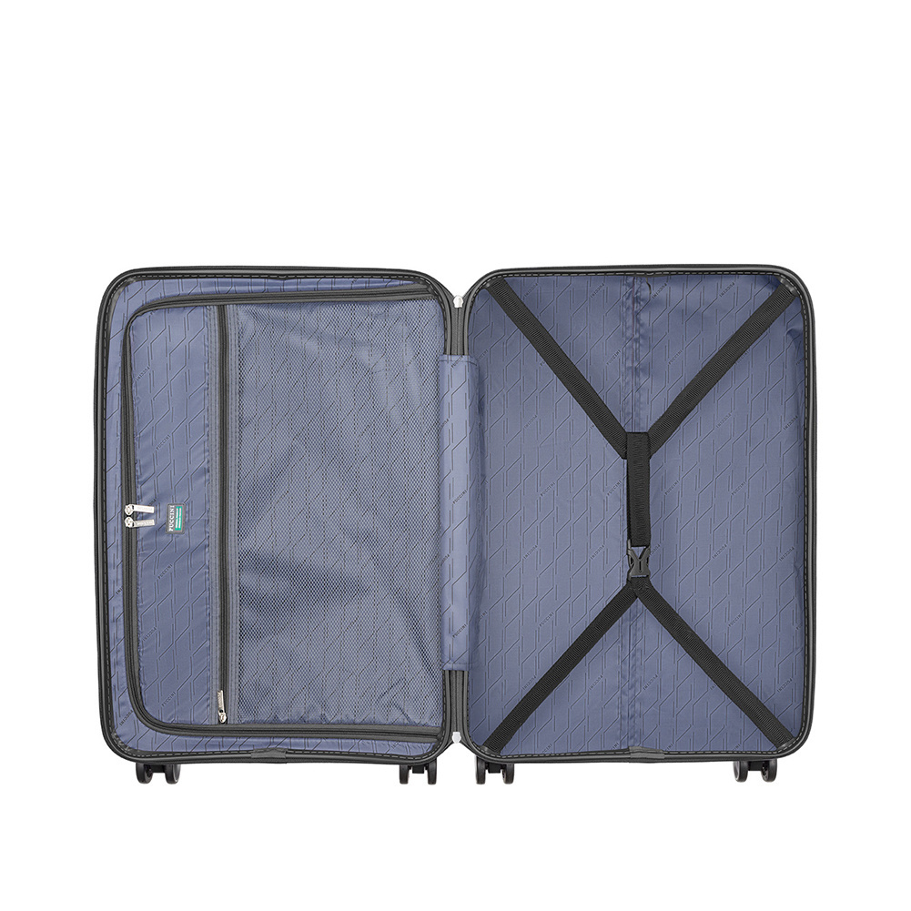 - walizka twarda wykonana z polipropylenu, materiału charakteryzującego się super lekką wagą i niezwykłą wytrzymałością