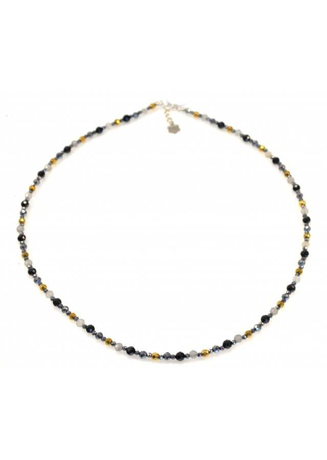 Naszyjnik wykonana ze srebra próby 925, rodowane Kamień: Onyx +Terahertz+ Hematyt + Labladoryt Rozmiar kamienia: 4mm/2 mm/3mm Długość: 44 cm Długości do wyboru: 38 cm /42 cm/ 44 cm Zapięcie: klasyczne (federing) Biżuteria ręcznie wykonana, produkt Polski.
