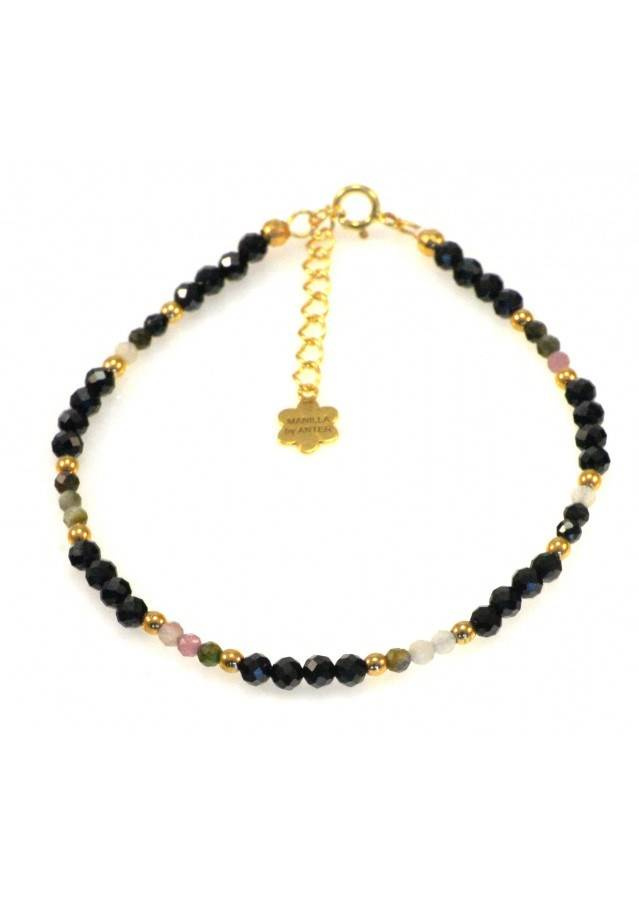 Kamień: Turmalin+ Hematyt Rozmiar kamienia: 2mm/3mm Długość: 17,5 cm + przedłużka do 19,5 cm Zapięcie: klasyczne (federing) Biżuteria ręcznie wykonana, produkt Polski.