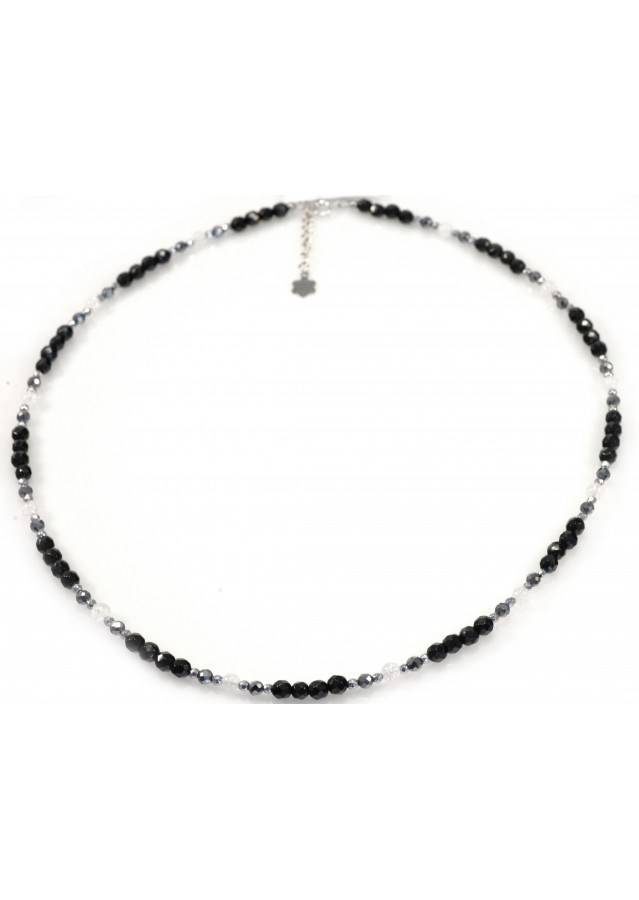 Naszyjnik wykonana ze srebra próby 925, pozłacanego 24 karatowym złotem. Kamień: Turmalin+ Kryształ+ Teraherz+ Hematyt Rozmiar kamienia: 2 mm/4mm/3mm Długość: 44 cm Długości do wyboru: 38 cm /42 cm/ 44 cm Zapięcie: klasyczne (federing) Biżuteria ręcznie wykonana, produkt Polski.