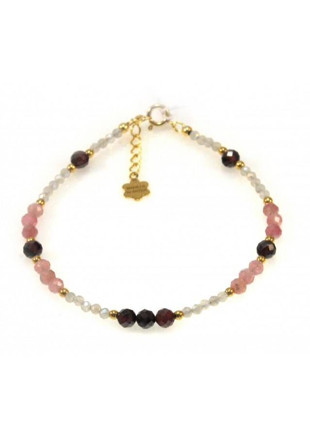Kamień: Turmalin+ Hematyt + Granat+ Labladoryt Rozmiar kamienia: 2mm/3mm Długość: 17,5 cm + przedłużka do 19,5 cm Zapięcie: klasyczne (federing) Biżuteria ręcznie wykonana, produkt Polski.