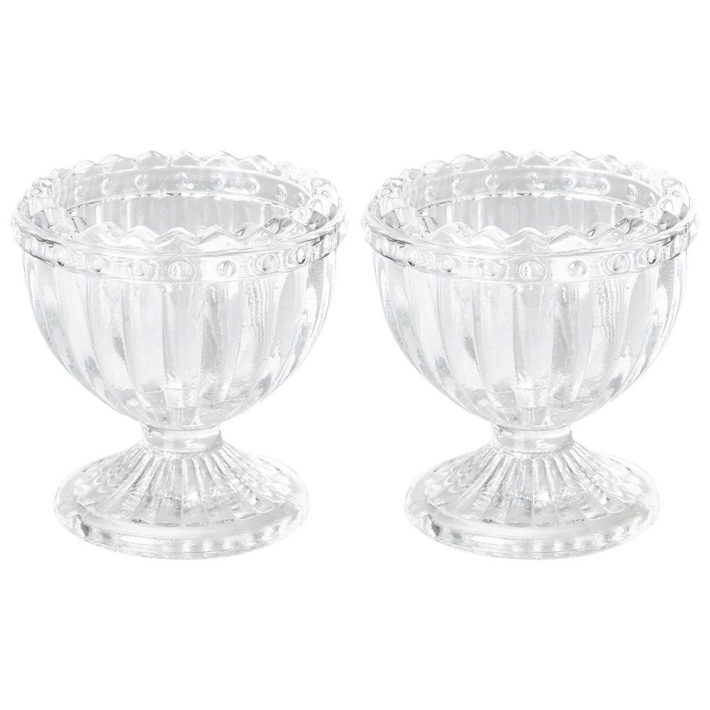 Zestaw dwóch szklanych podstawek na jajko w kształcie kieliszka. Przezroczyste szkło sprawia, że idealnie prezentują się na stole. Jajko na miękko umieszczone w podstawce, będzie podane w niezwykle stylowy sposób. Przydatne podczas codziennych śniadań lub jako prezent dla miłośników wyjątkowych akcesoriów kuchennych. Wyprodukowano zgodnie z europejskimi standardami.